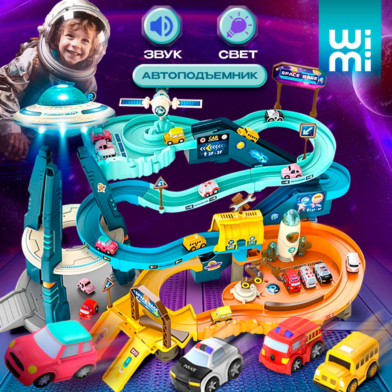 Купить Многоуровневая парковка для машинок WiMi космическая станция, гоночный трек и паркинг, интерактивная ракета и машинки