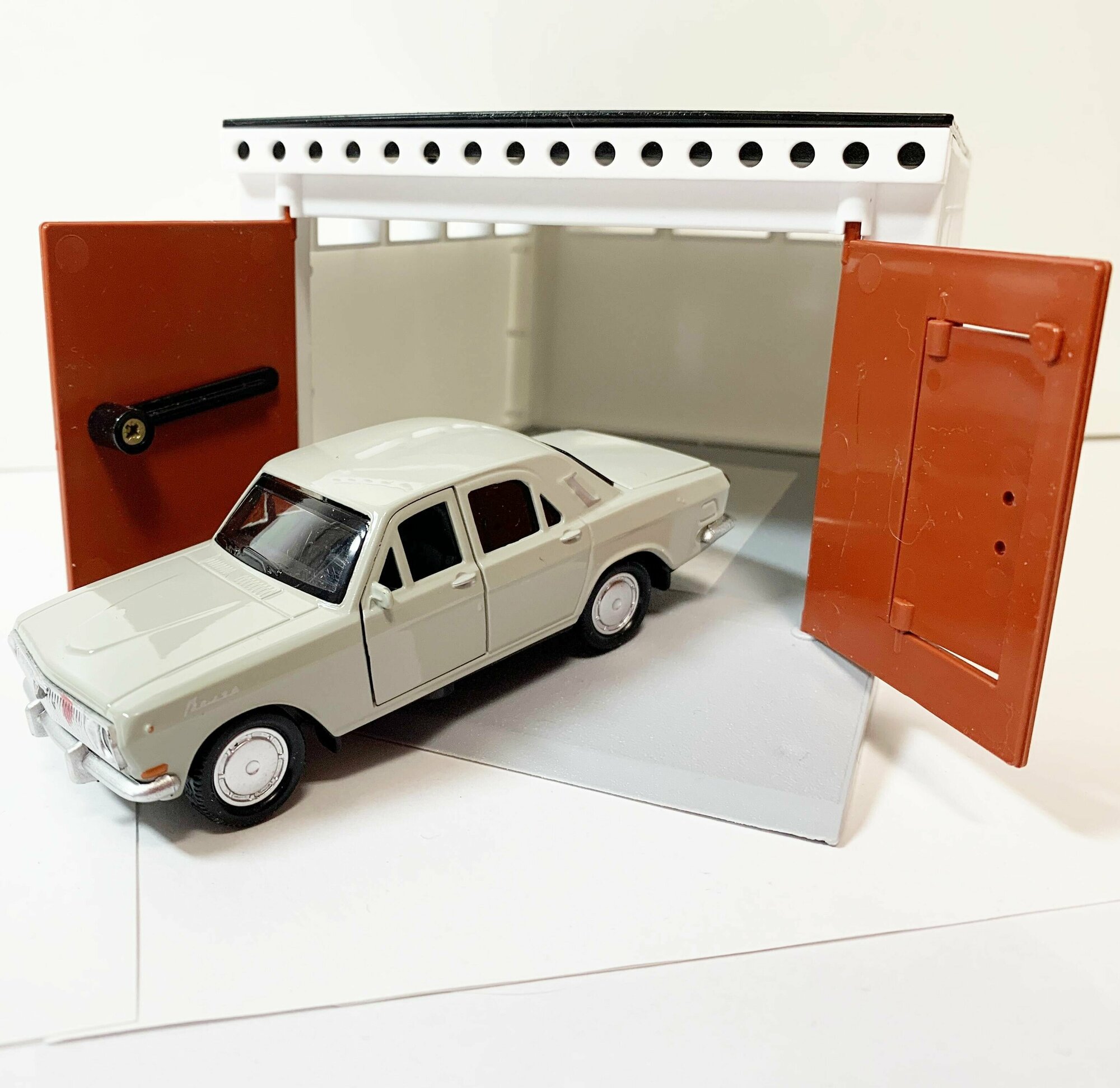 Купить Гаражный бокс с распашными воротами и металлическая инерционная машинка Волга 2401 с открывающимися дверями (12 см)