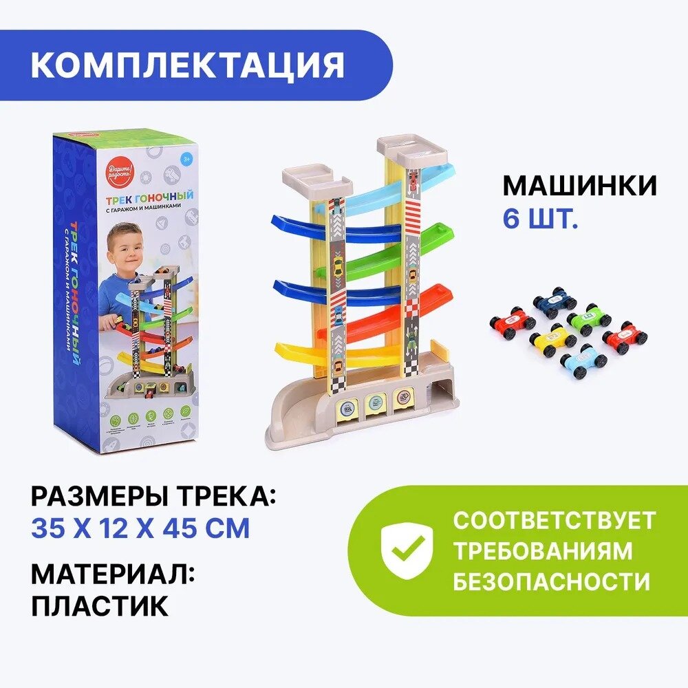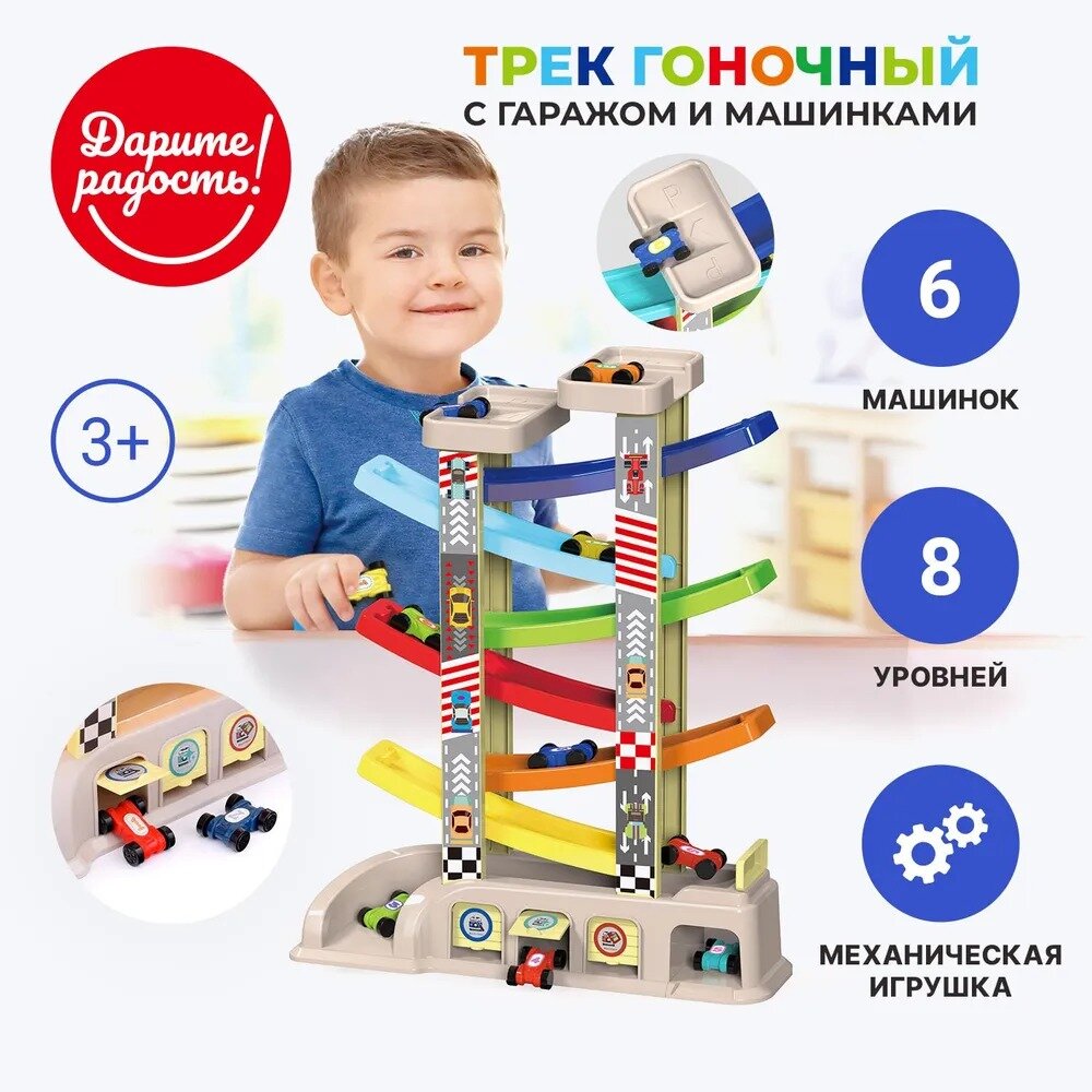 Гоночный автотрек с гаражом и машинками для мальчиков и девочек от 3 до 5 лет "Дарите радость"