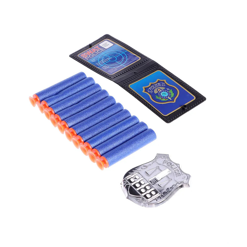 Ниже Вы можете прочитать отзывы на Игровой набор полицейского военного, игрушка для мальчика: автомат 56см, каска и очки, значок и удостоверение, патроны 10 штук и мишень, ознакомится с подробными характеристиками, посмотреть интересные обзоры и фотографии на Игровой набор полицейского военного, игрушка для мальчика: автомат 56см, каска и очки, значок и удостоверение, патроны 10 штук и мишень.