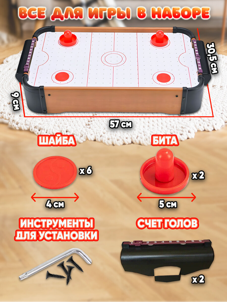Аэрохоккей настольный Play Okay детский, с вентилятором, компактный, питание от батареек, развивающий, фанера интересное: