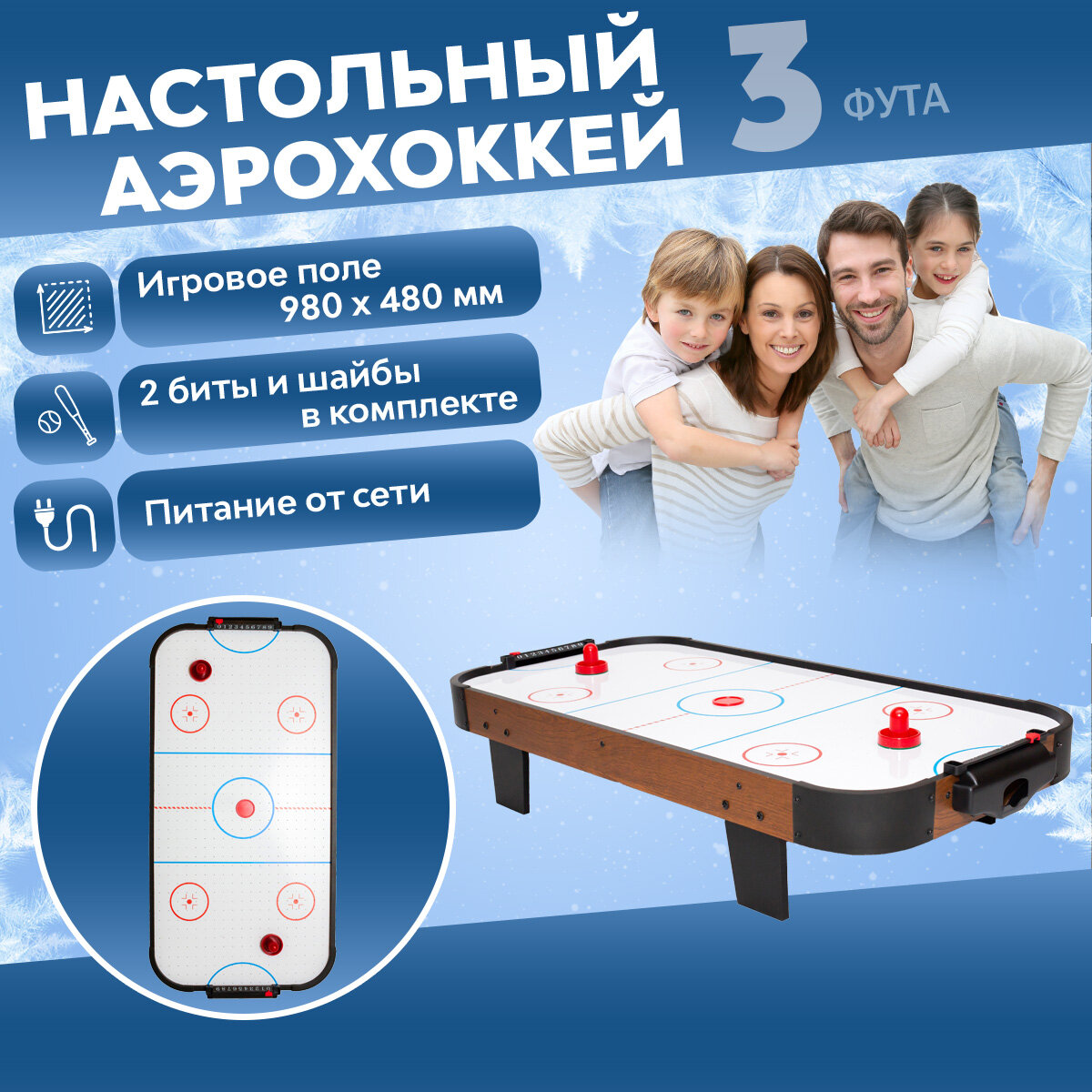 Аэрохоккей настольный 3 фута / хоккей настольный / размер игрового поля 980 х 480 х 3 мм интересное: