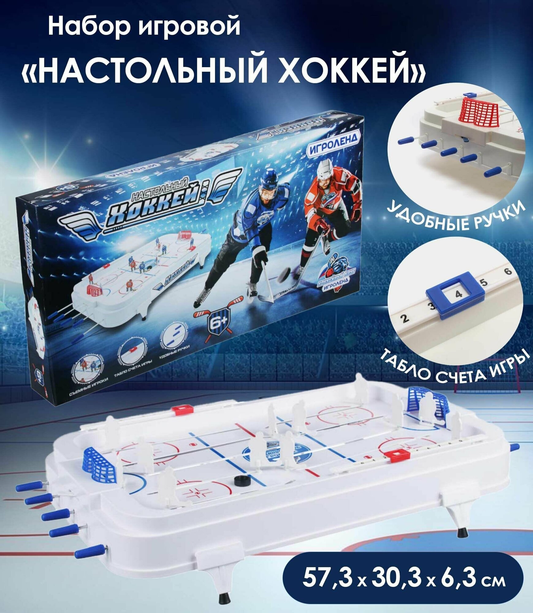 Игроленд Набор игровой "Настольный хоккей", ABS, металл, бумага, 57,3х30,3х6,3см интересное: