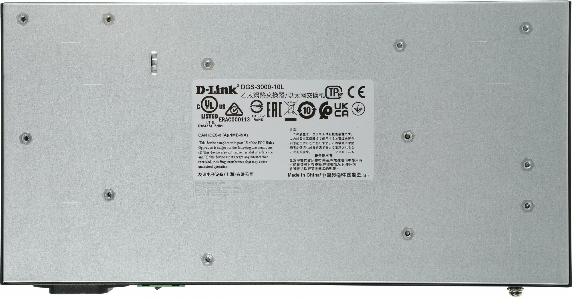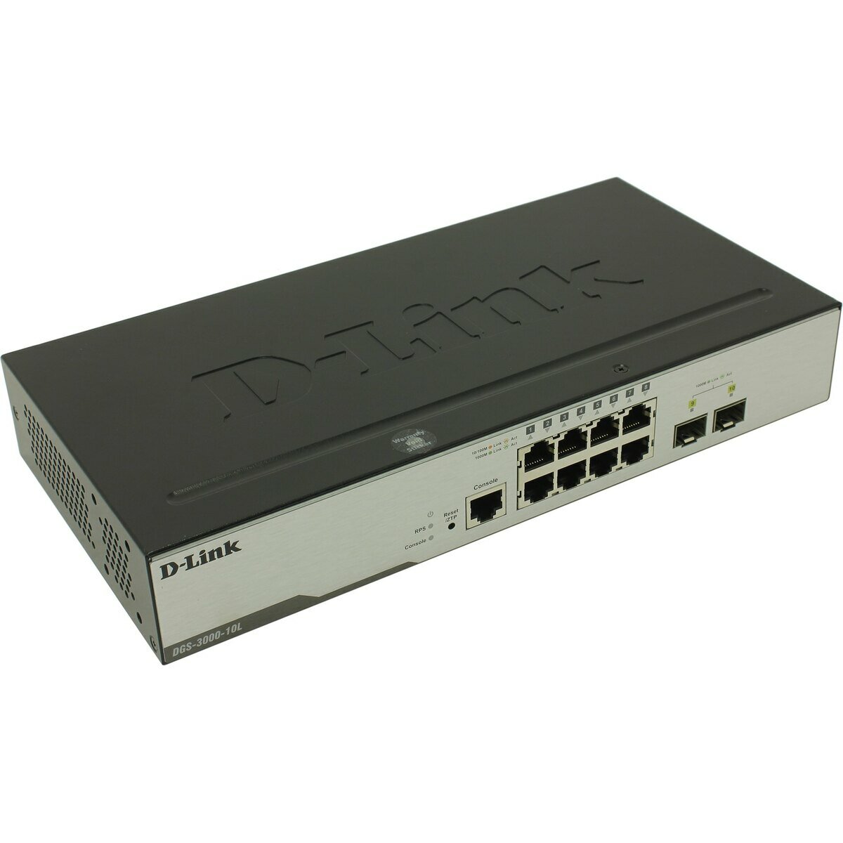 D-Link Управляемый коммутатор 2 уровня с 8 портами 10/100/1000Base-T и 2 портами 1000Base-X SFP, DGS-3000-10L/B1A
