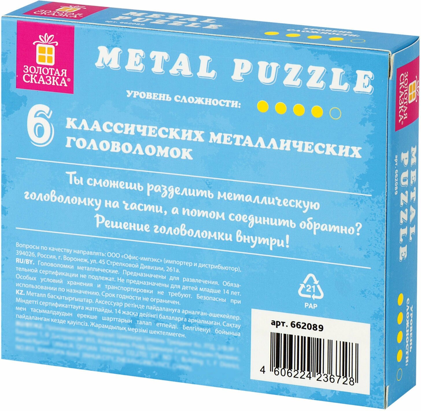 СохранитьГоловоломки металлические для взрослых и детей Золотая Сказка (уровень сложности Эксперт), набор 6 штук, 662089 интересное: