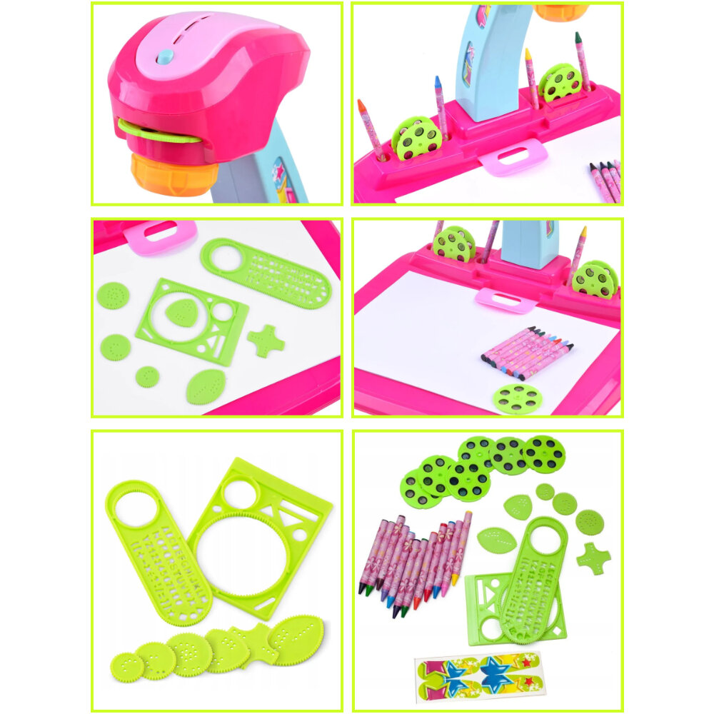 Купить Проектор для рисования детский, мелки, трафареты, 6 дисков слайдов с рисунками