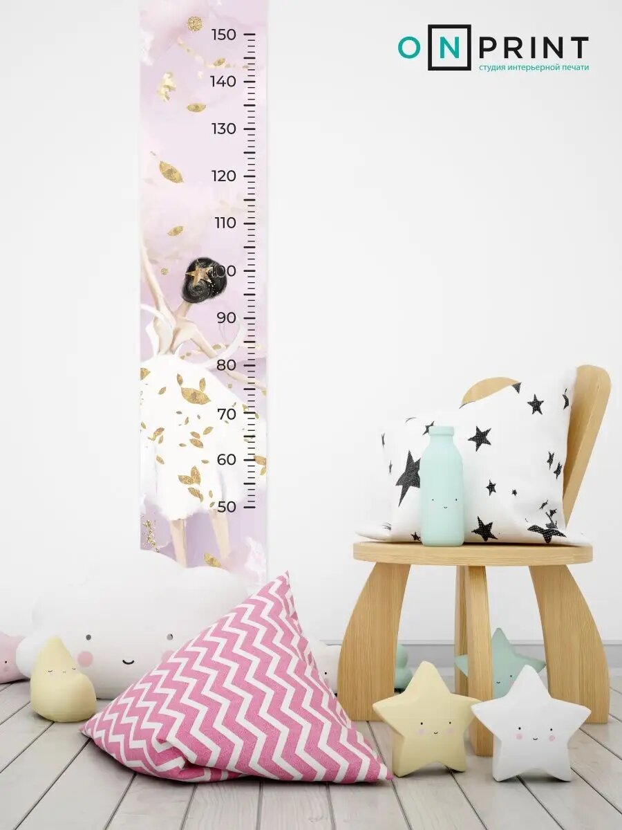 Ростомер на стену для детской девочки наклейка Балерины для измерения роста OnPrint