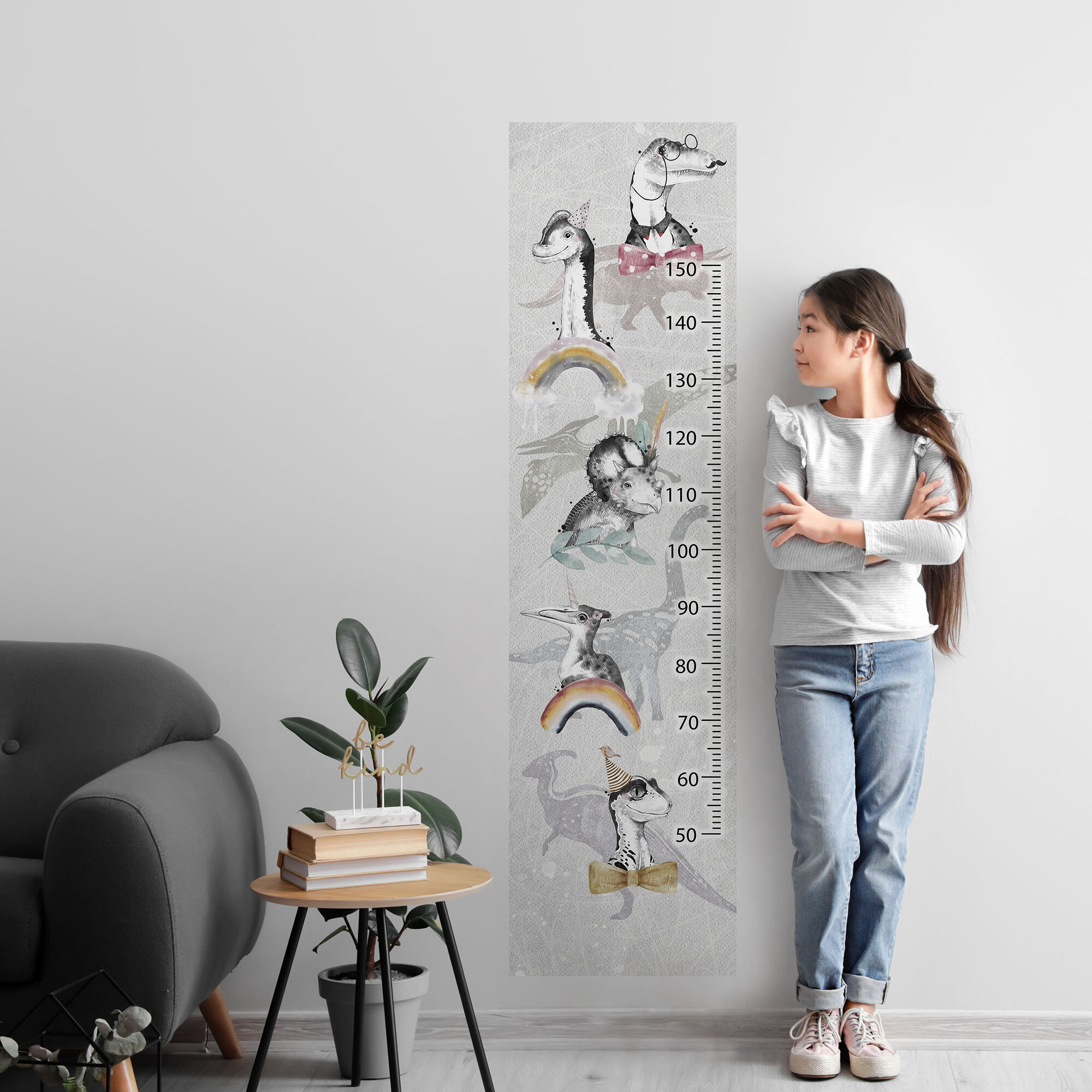Купить Ростомер детский на стену наклейка DINO 2 для измерения роста OnPrint