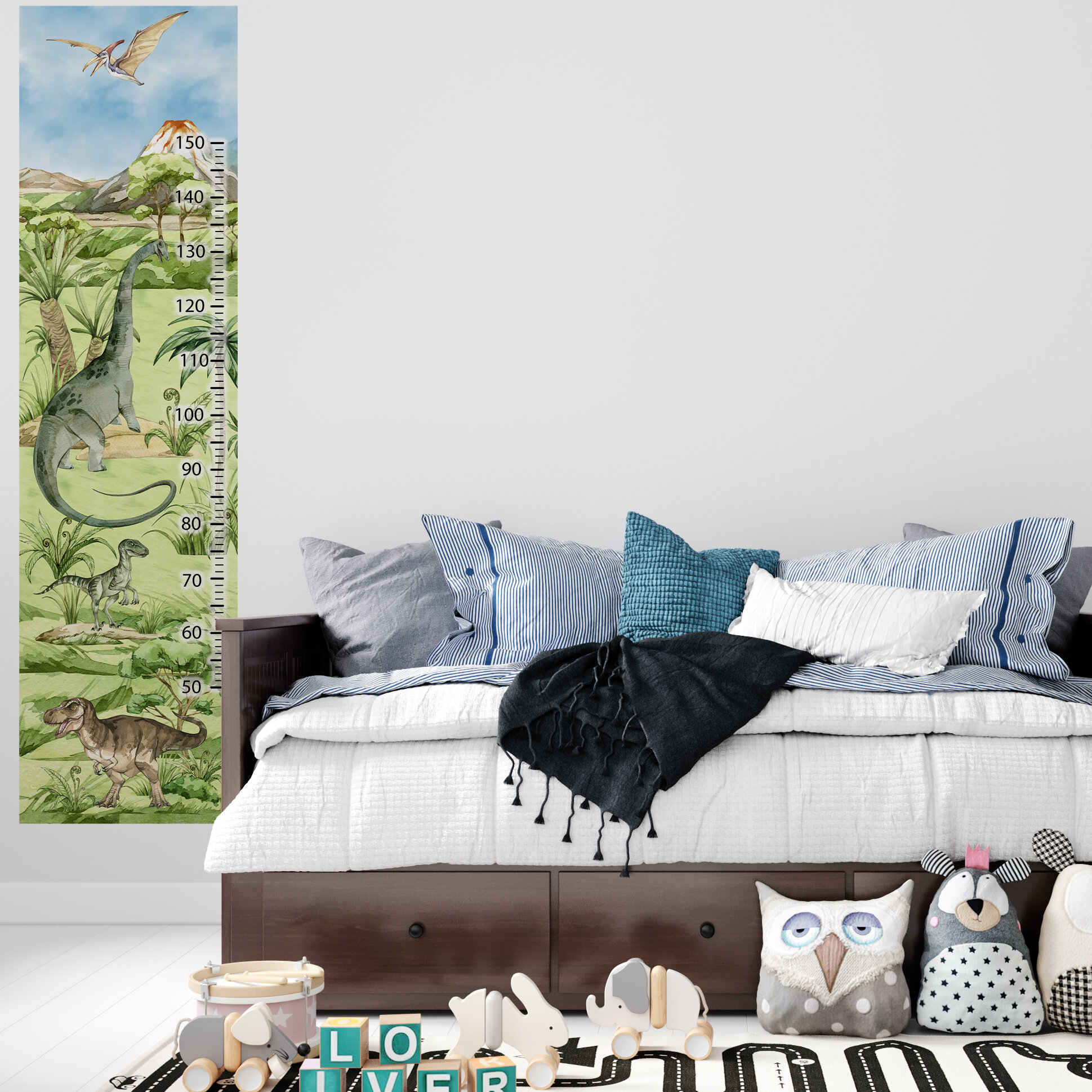 Ростомер детский на стену наклейка DINO 2 для измерения роста OnPrint
