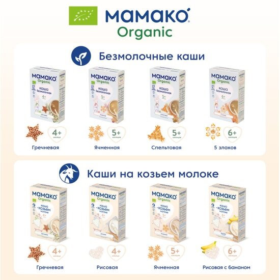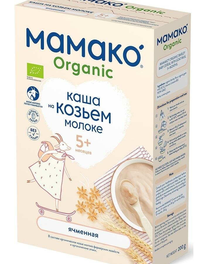 Каша ORGANIC ячменная на козьем молоке MAMAKO, 200 г интересное: