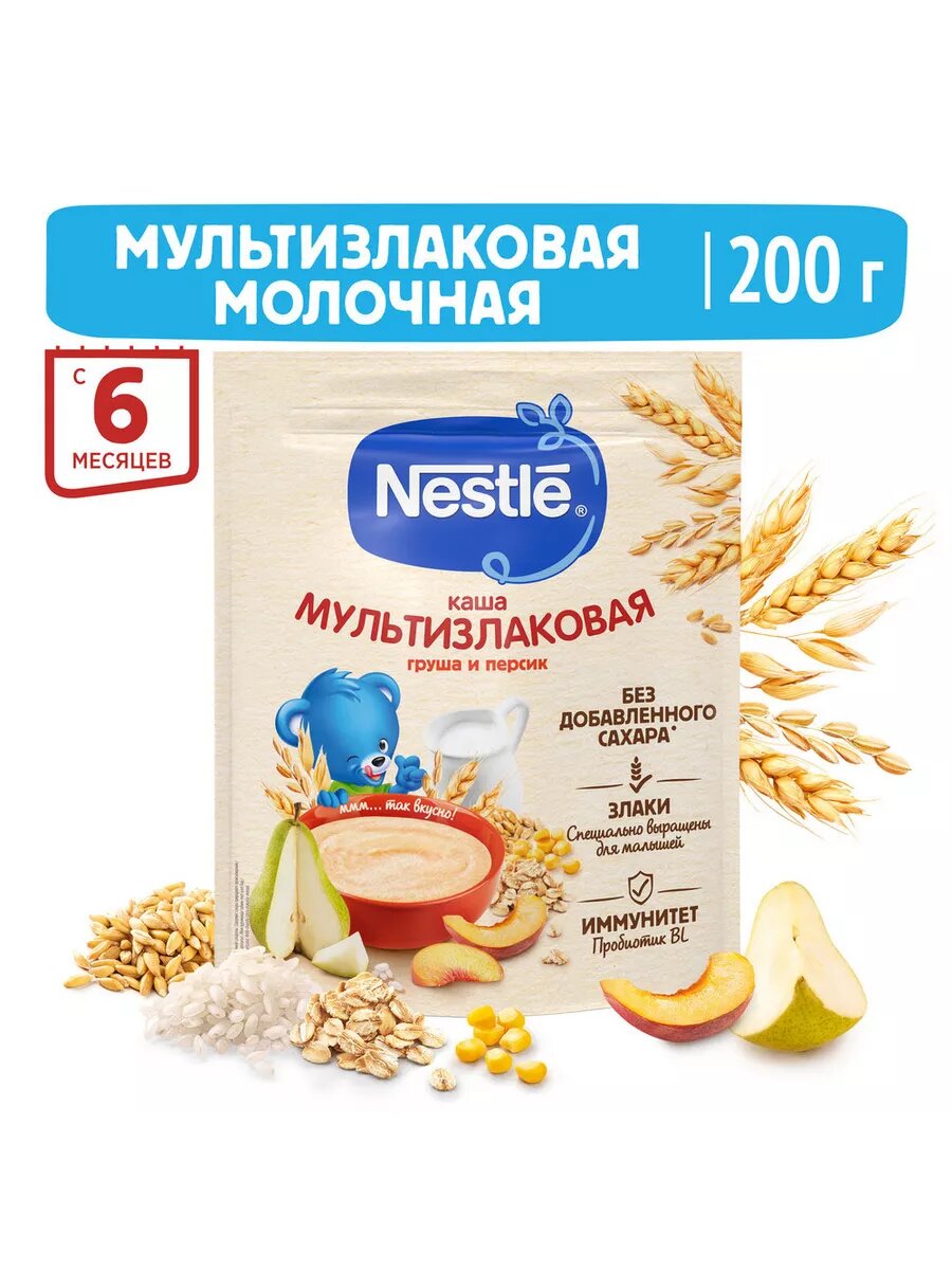 Купить Каша молочная Nestle мультизлаковая груша персик с 6 месяцев