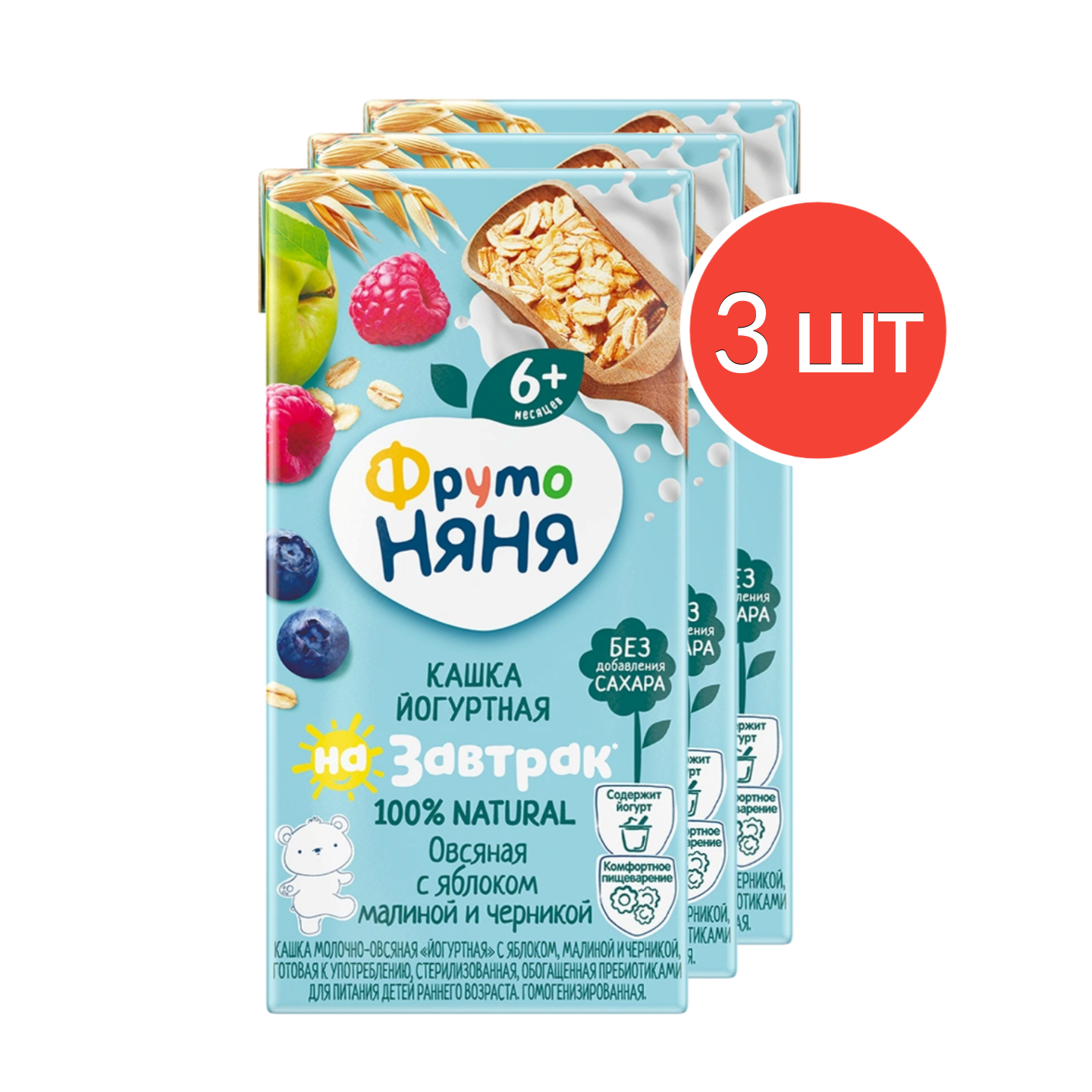 Кашка молочная ФрутоНяня йогуртная яблоко-малина-черника 0.2л с 6 месяцев, 3 шт интересное: