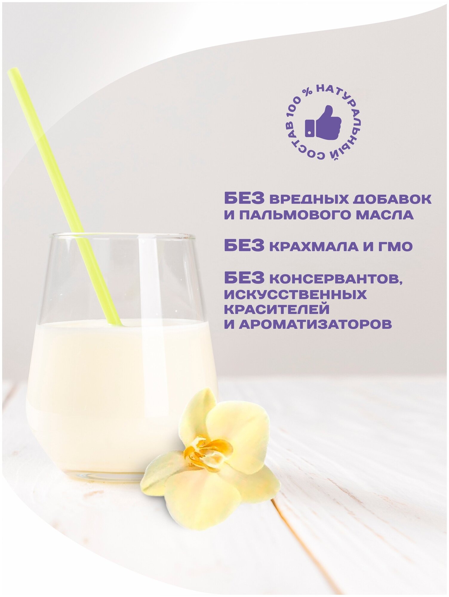 | Состав | молоко сухое цельное, сахар, пребиотические волокна, колострум, витаминно-минеральный премикс, натуральный ароматизатор "ванильное мороженое", натуральный ароматизатор "ваниль", соль |