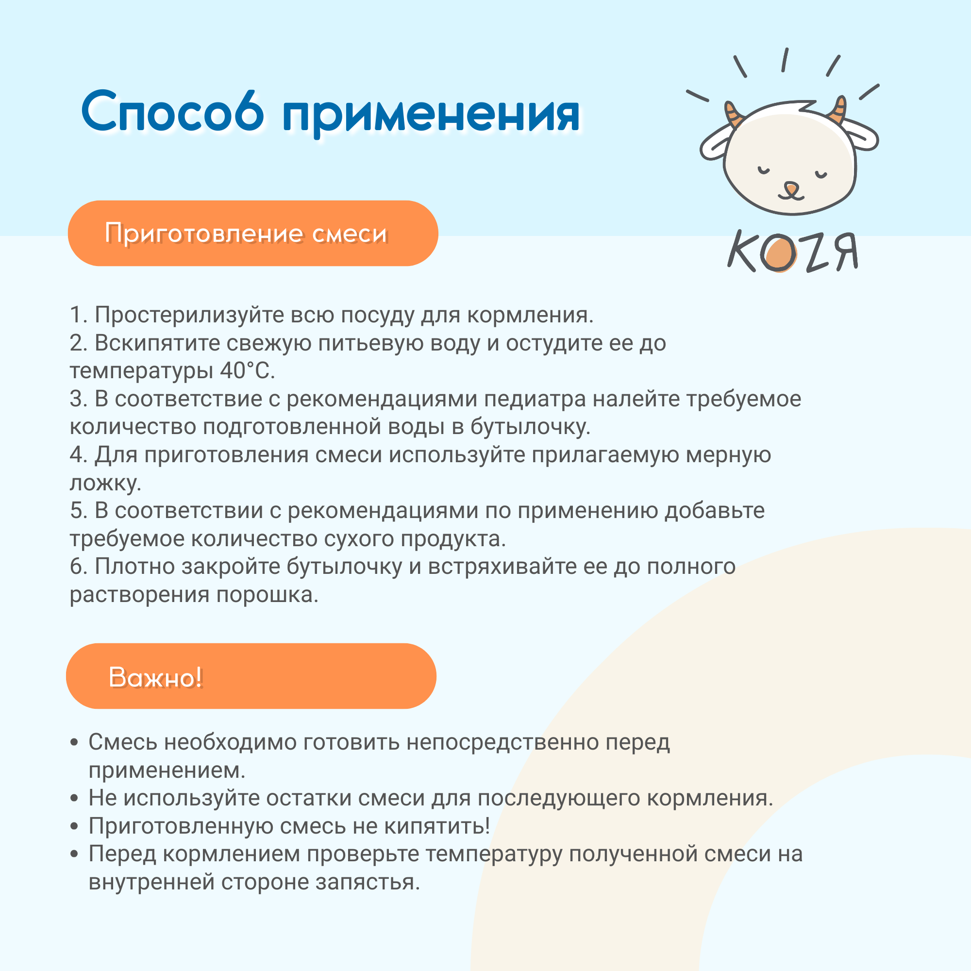 Смесь детская Козя -1 на козьем молоке 0-6 месяцев 400г интересное: