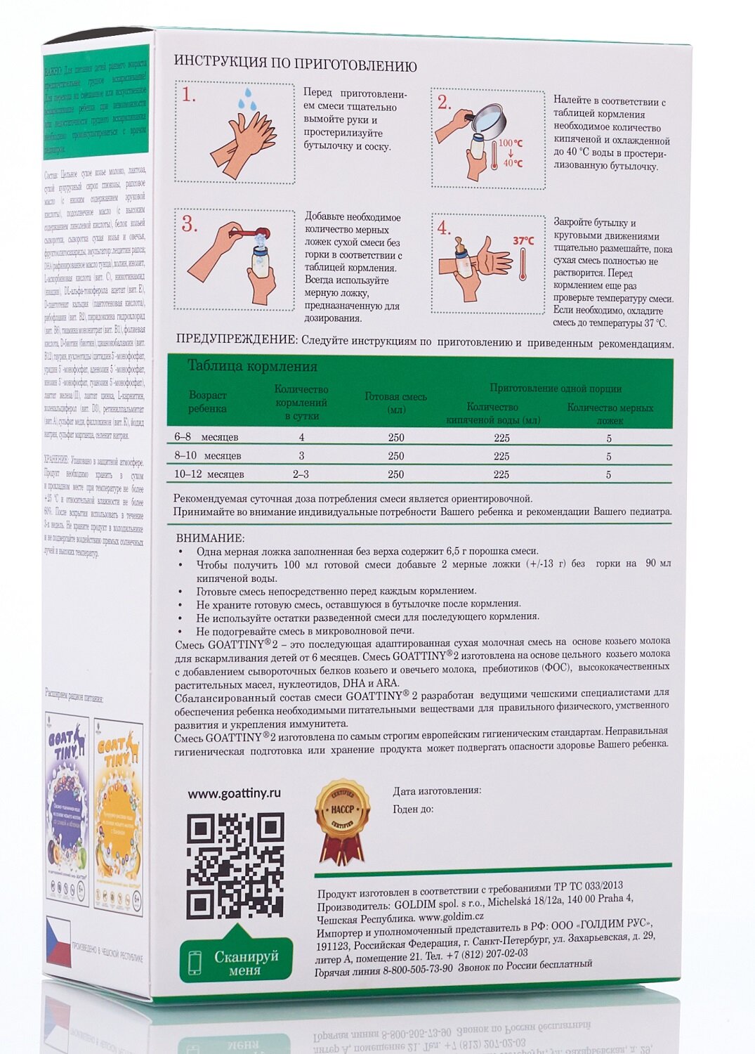 | Содержит | козье молоко / пребиотики |