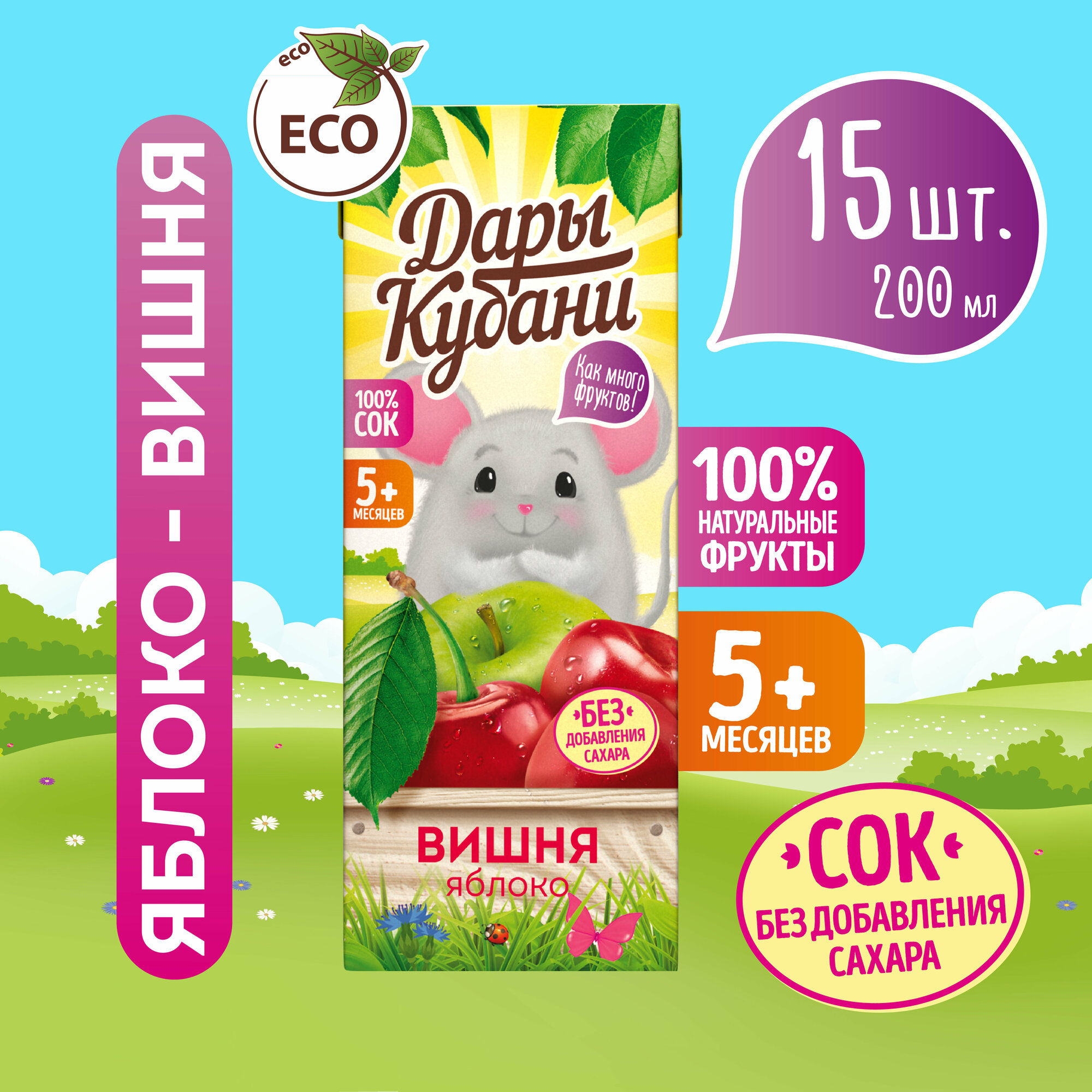 Купить Детский сок Дары Кубани яблочно-вишневый, без сахара, с 5 месяцев, 200 мл х 15 шт.