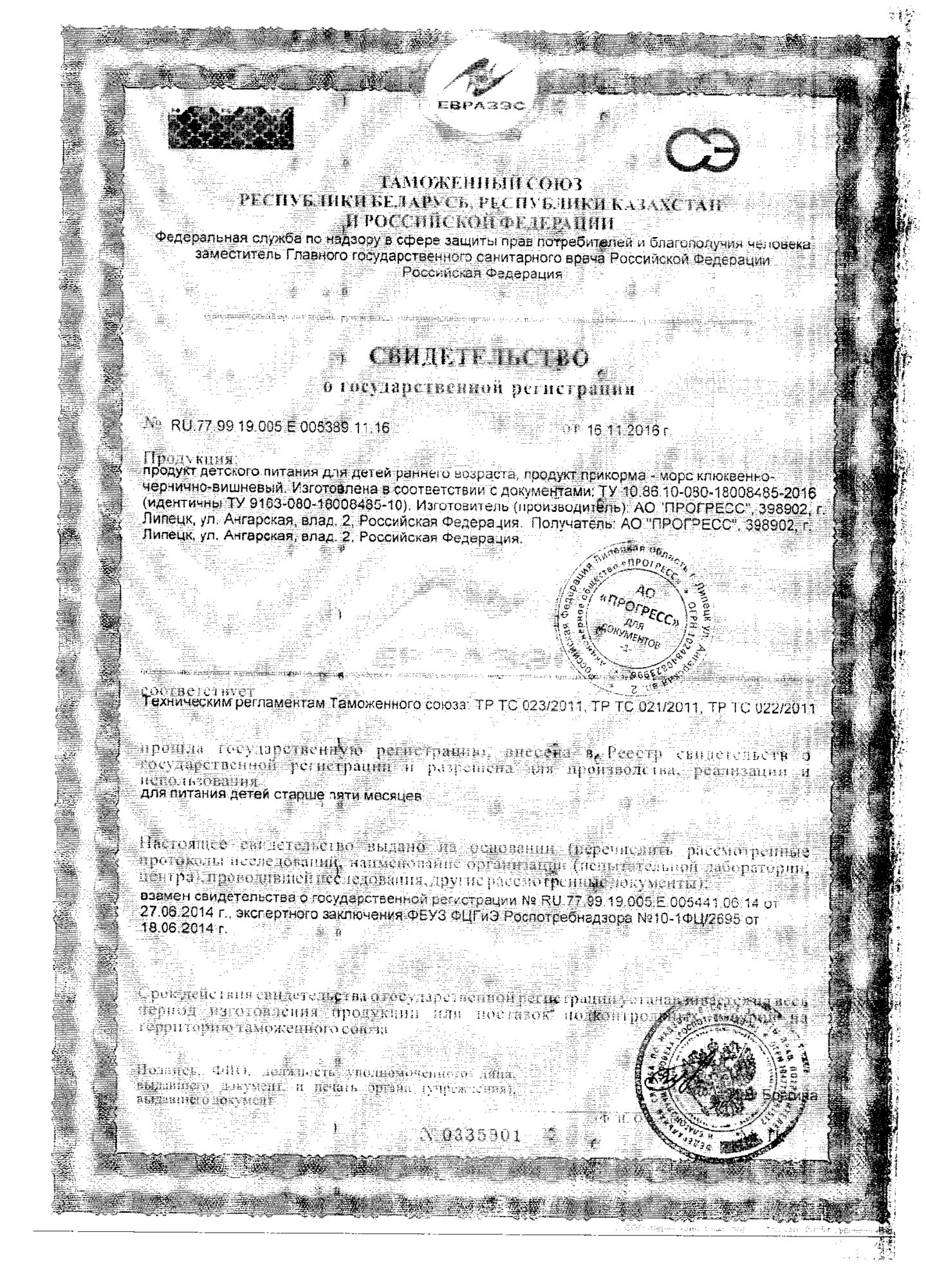 | Состав | Ягоды: пюре из клюквы, пюре из черники Пищевые добавки: вода, сахар, лимонная кислота Концентраты: концентрированный вишневый сок Объемная доля сока (пюре), не менее 15% |