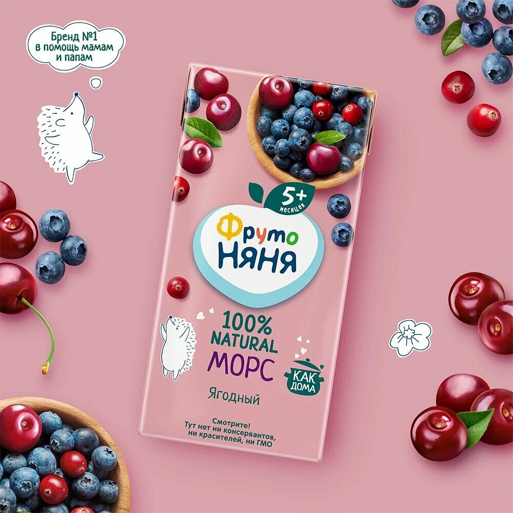 Морс ФрутоНяня из клюквы, черники и вишни с 5 месяцев 0,2 л 10 шт интересное: