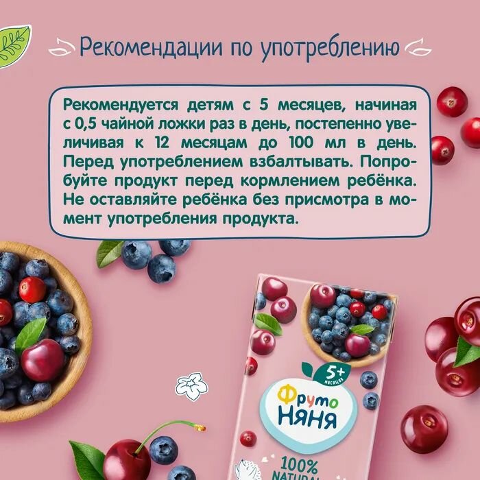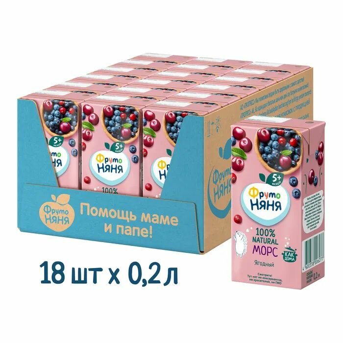 Морс ФрутоНяня из клюквы, черники и вишни с 5 месяцев 0,2 л 18 шт интересное: