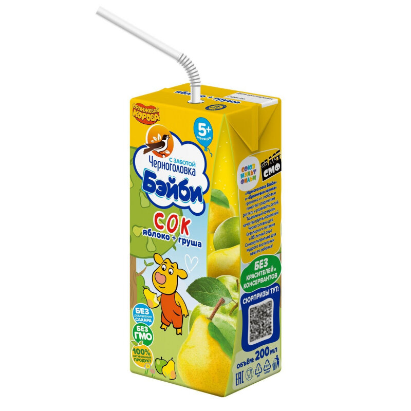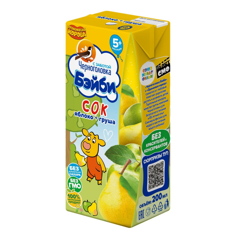 Сок фруктовый черноголовка бэйби Яблоко и груша, с 5 месяцев, 200мл интересное: