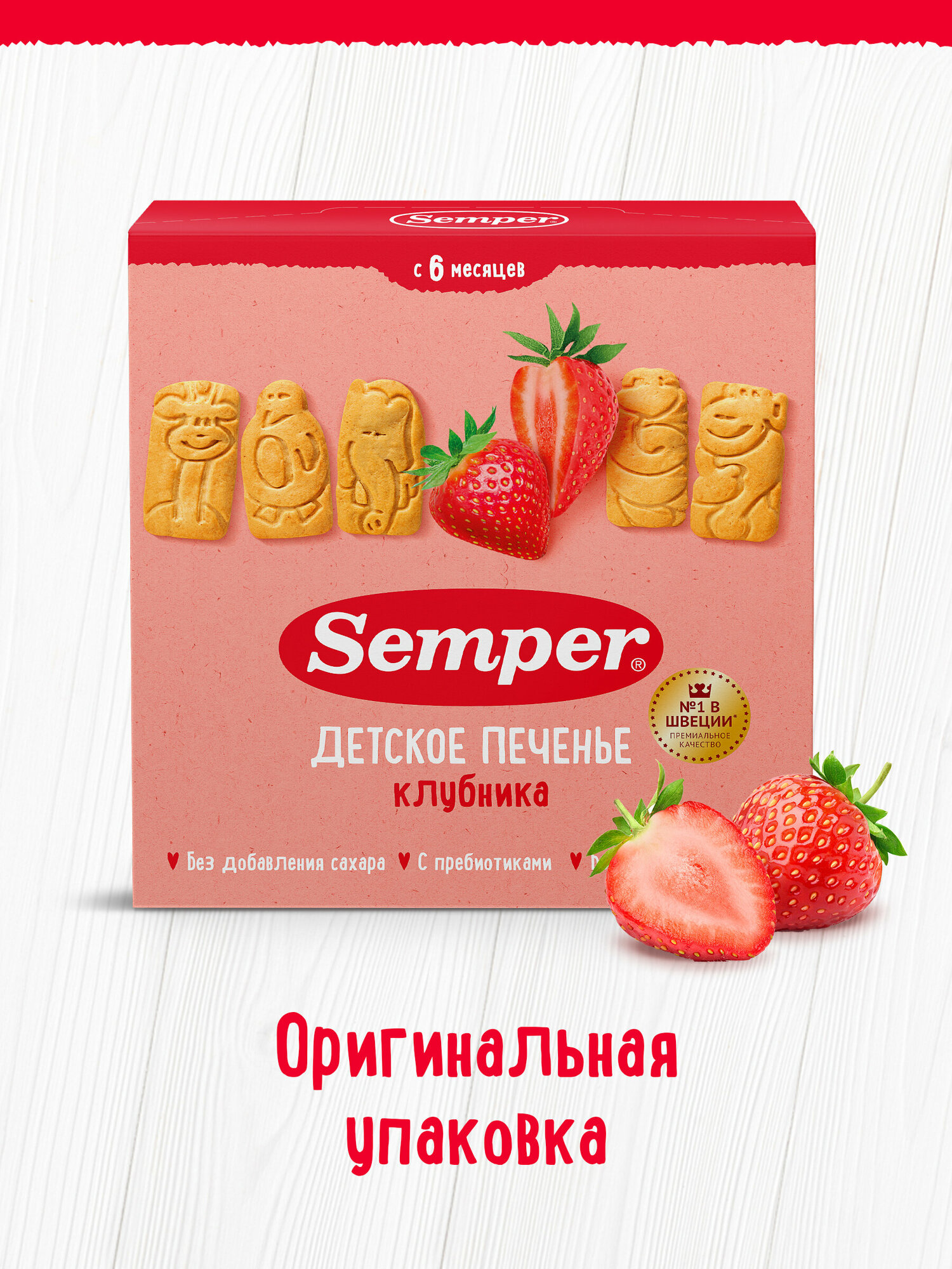 Купить Печенье детское Semper с 6 месяцев, клубничное, без сахара, 125 г
