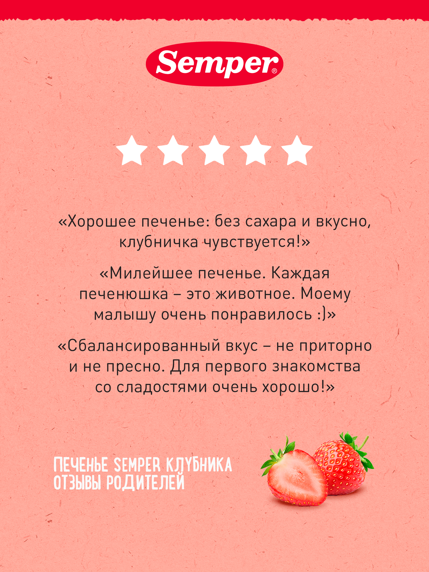Печенье детское Semper с 6 месяцев, клубничное, без сахара, 125 г интересное: