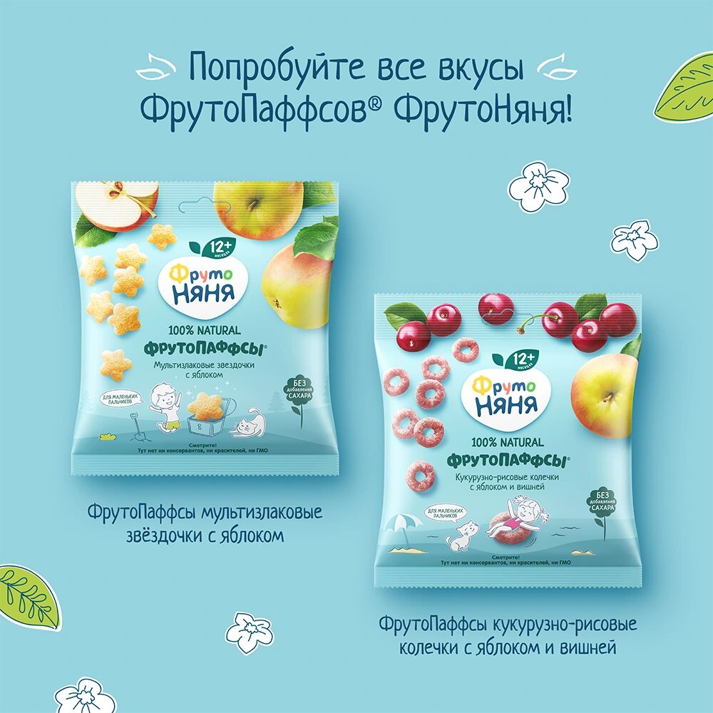 ФрутоНяня ФрутоПаффсы Кукурузно-рисовые колечки с яблоком и вишней, 21г (9 шт.)