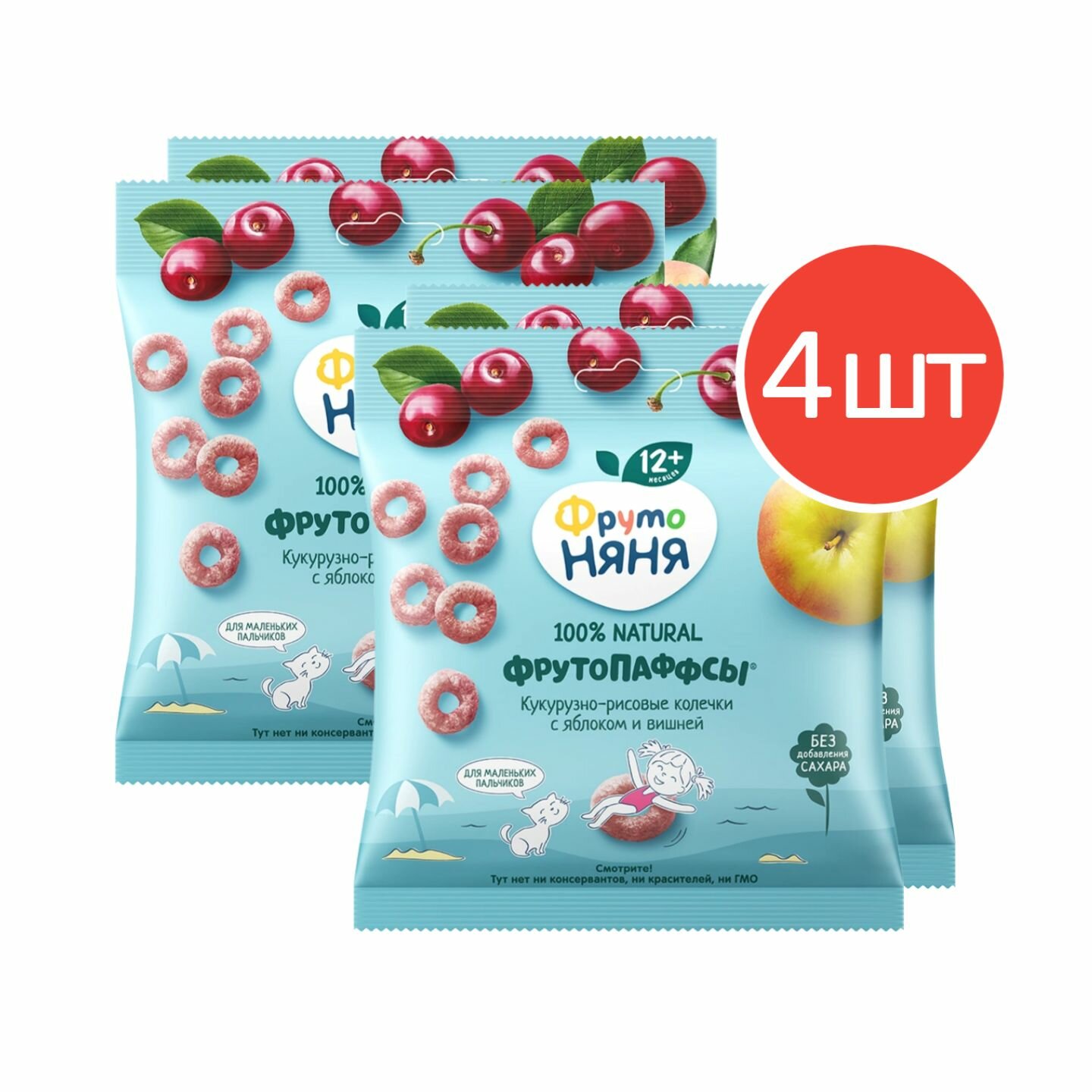 Фрутопаффсы Фрутоняня кукурузно-рисовые колечки с яблоком и вишней «Хрустящие злаки» с 12 мес 20 г
