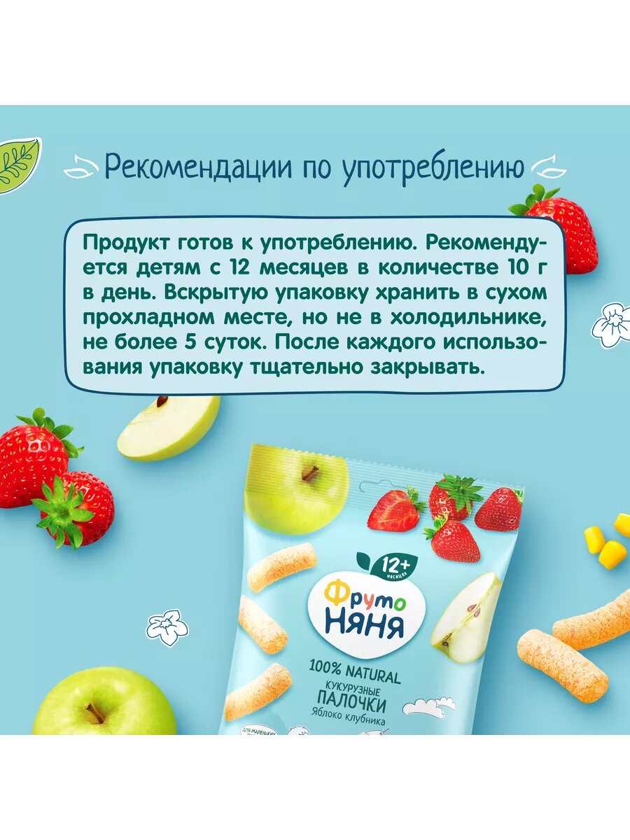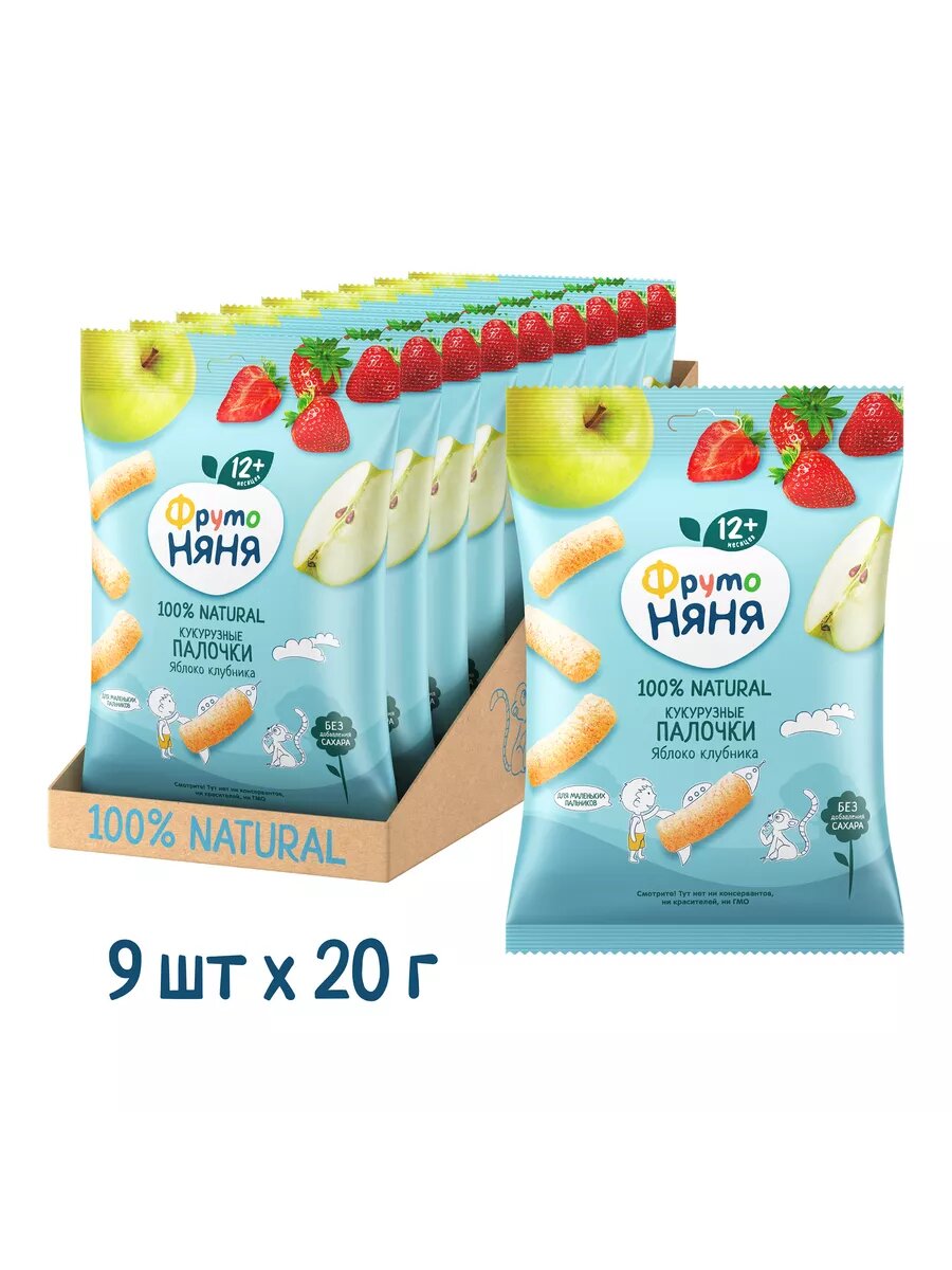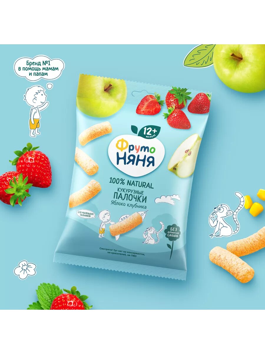 Спайка Палочки кукурузные ФрутоНяня яблоко, клубника, 20г (9 шт) интересное: