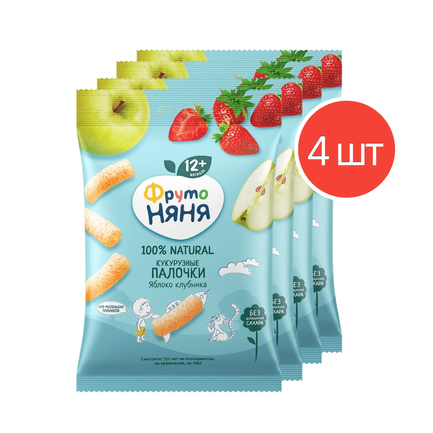 Купить Кукурузные палочки ФрутоНяня с яблоком и клубникой с 12 месяцев 20 г 4 шт