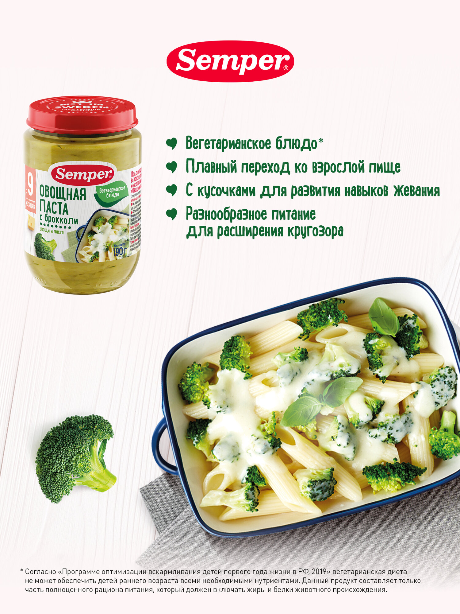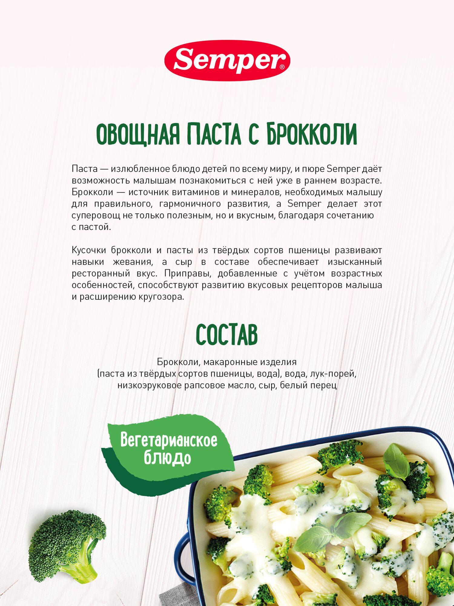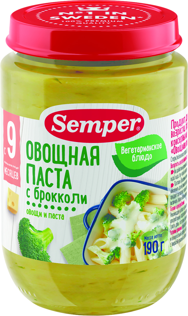 Semper - пюре овощная паста с брокколи, 9 мес., 190 гр интересное: