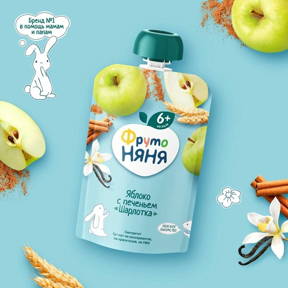 Пюре Фрутоняня из яблок с печеньем "Шарлотка" с 6 мес 90 г (12 шт) (пауч) интересное: