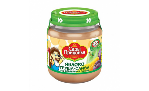 Упаковка из 12 штук Детское пюре "Сады Придонья" яблоко-груша-слива с/б 120г интересное: