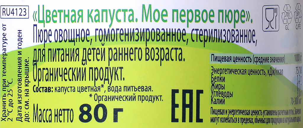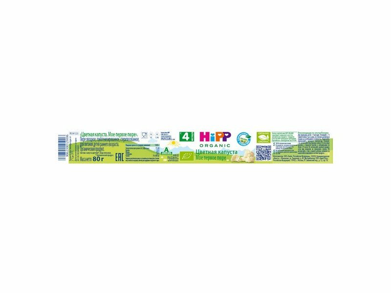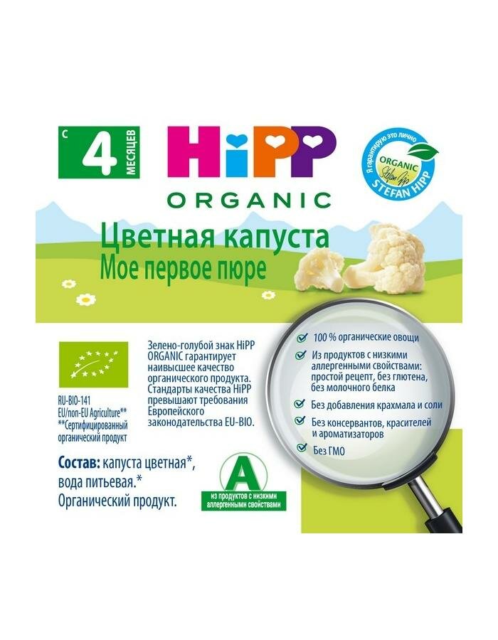Органическое овощное пюре HiPP "Цветная капуста, моё первое пюре", 80 гр./1шт интересное: