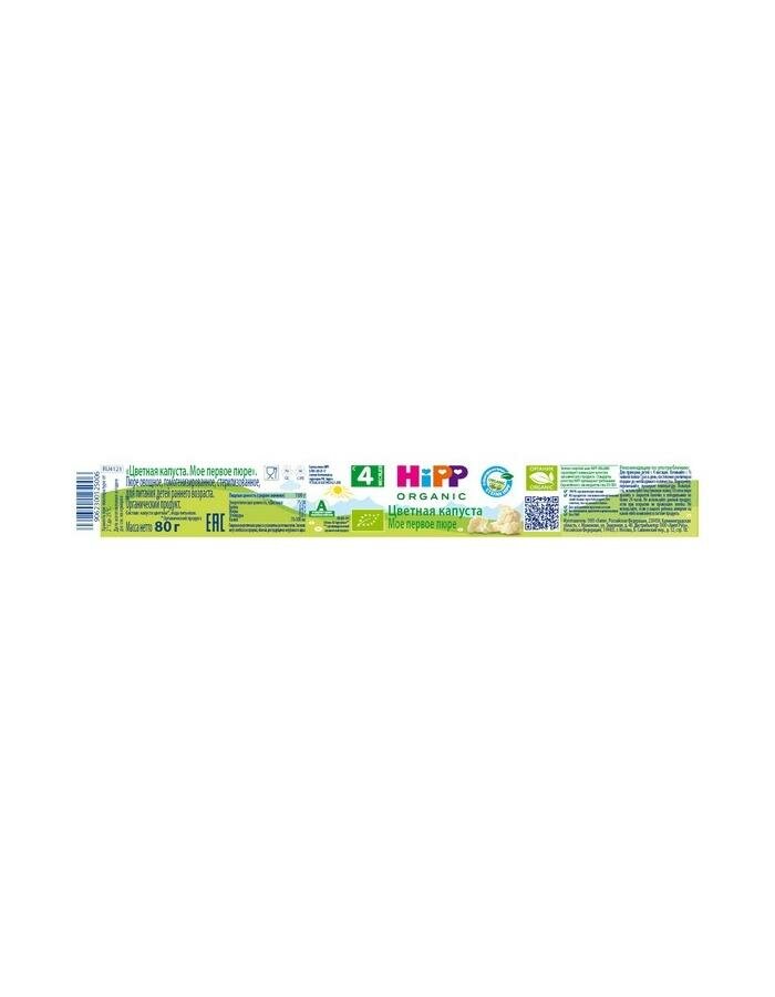 Купить Органическое овощное пюре HiPP "Цветная капуста, моё первое пюре", 80 гр./1шт
