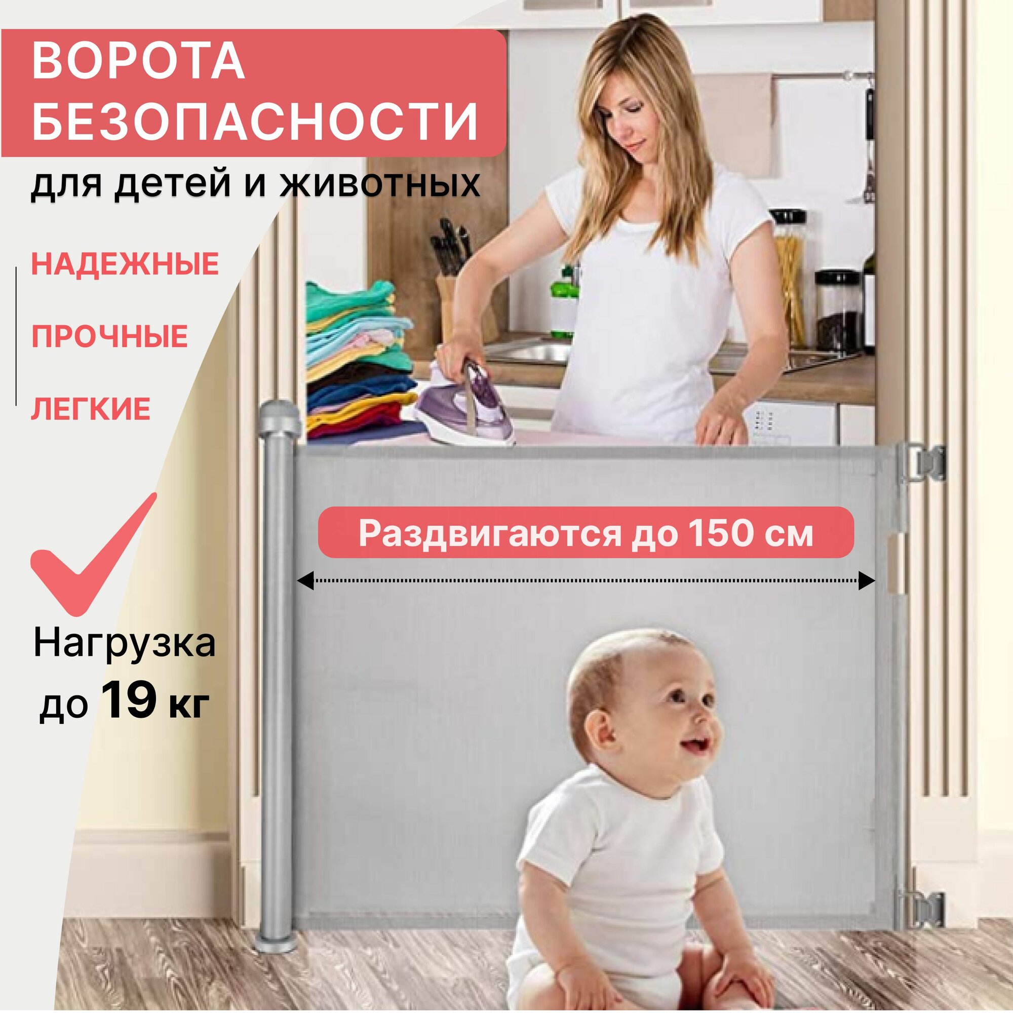 Купить Ворота безопасности MagicO Grey , 2 комплекта крепления, до 150 см/забор для ребенка/ограждение для детей и животных/загородка для лестницы