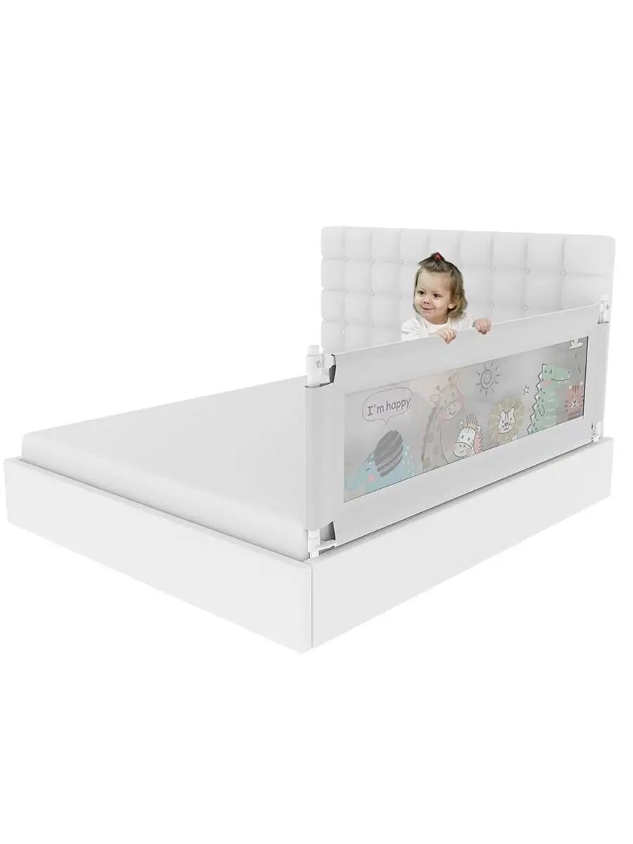 Купить Барьер на кровать для детей Floopsi Animals 180см. серый - 1шт. Защитный барьер на взрослую кровать от падений. Барьер безопасности для кровати.