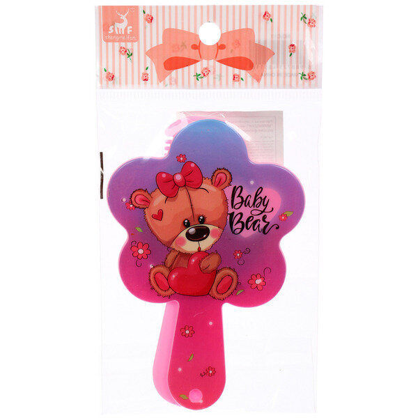 Расческа с зеркалом в наборе детские "мимишки", мишка, цвет розово-фиолетовый, 11см интересное: