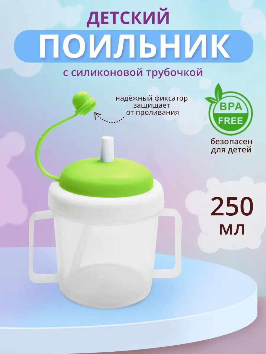Поильник пл 0,25л Е-87 детск.зелен интересное: