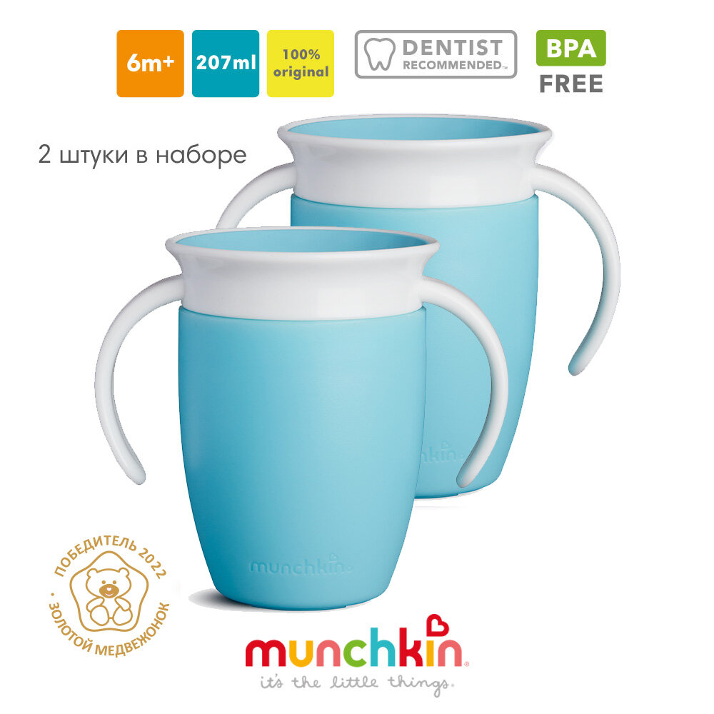 Купить Поильник непроливайка Munchkin MIRACLE® 360° с ручками 207 мл. с 6 мес.2 шт, голубой