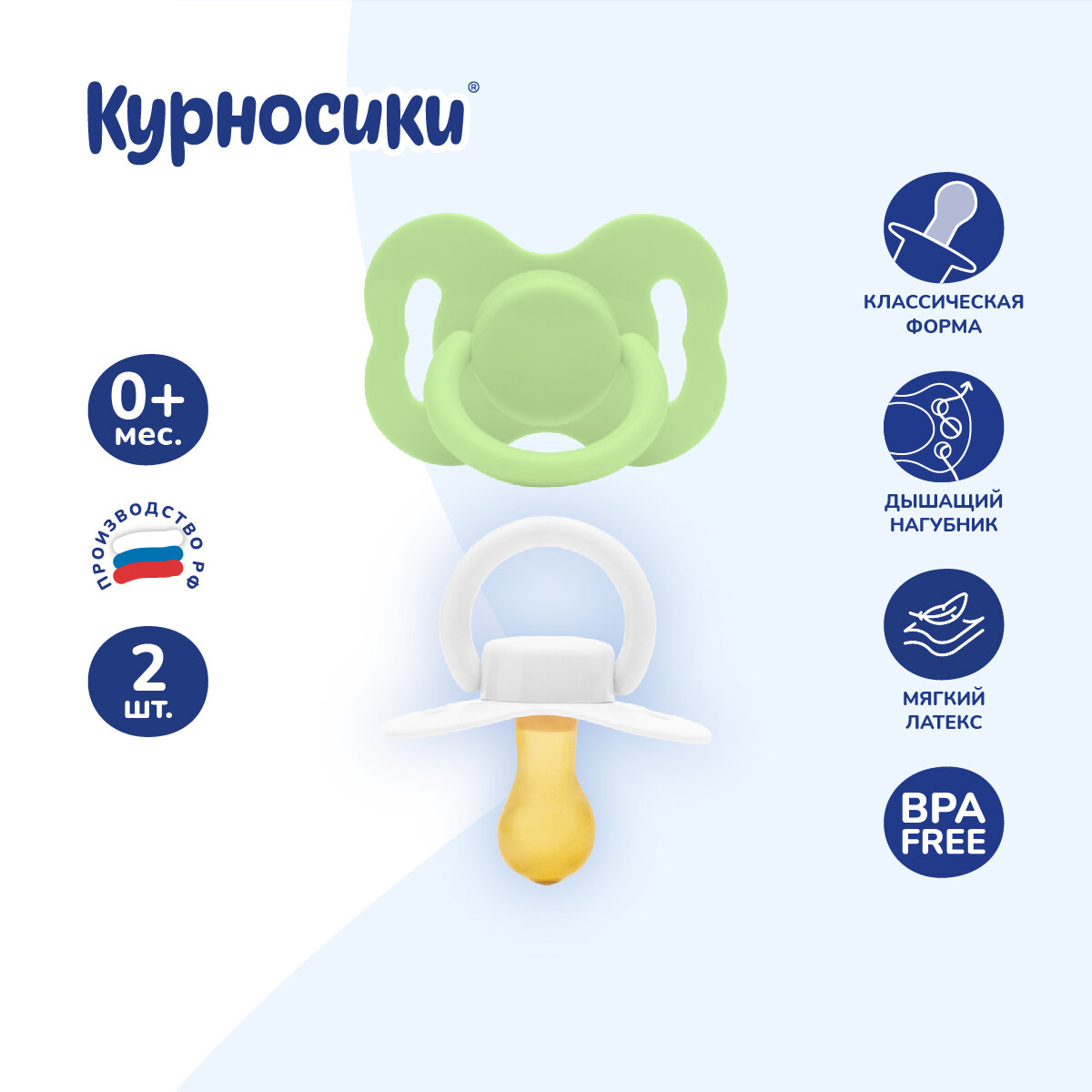 Соска пустышка для новорожденных Курносики классическая, латекс от 0+ мес, 2 шт, салатовый