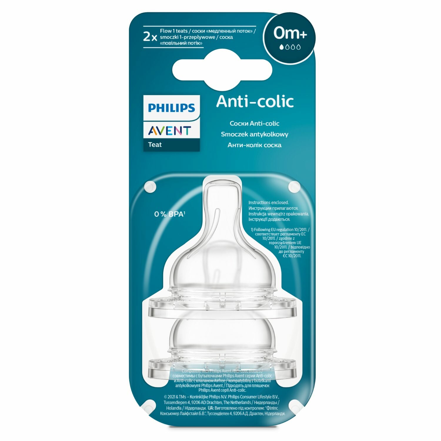 Соска для бутылочки Anti-colic 0+ мес., 2 шт. SCY761/02