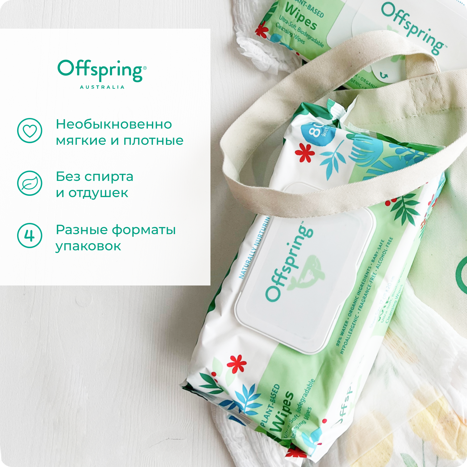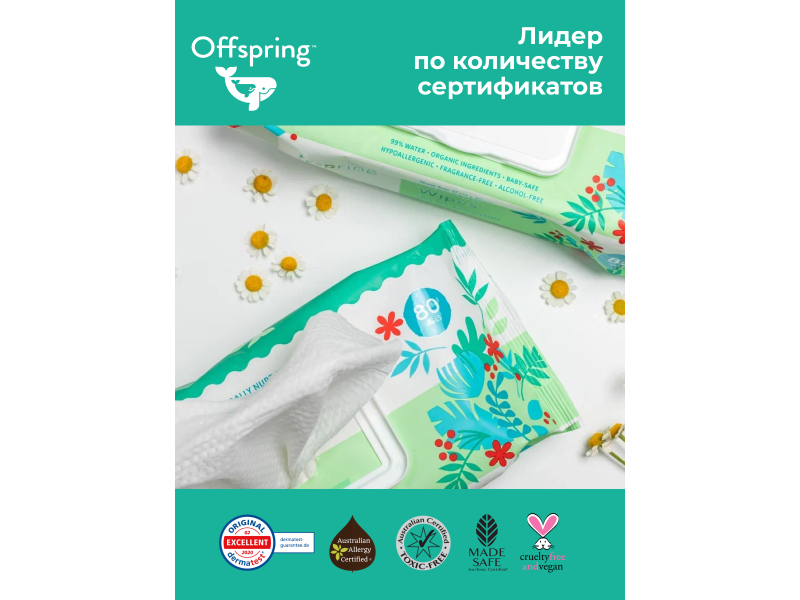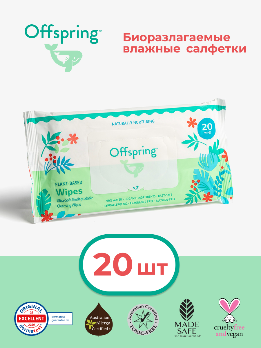 Offspring биоразлагаемые влажные салфетки, 20 шт. интересное: