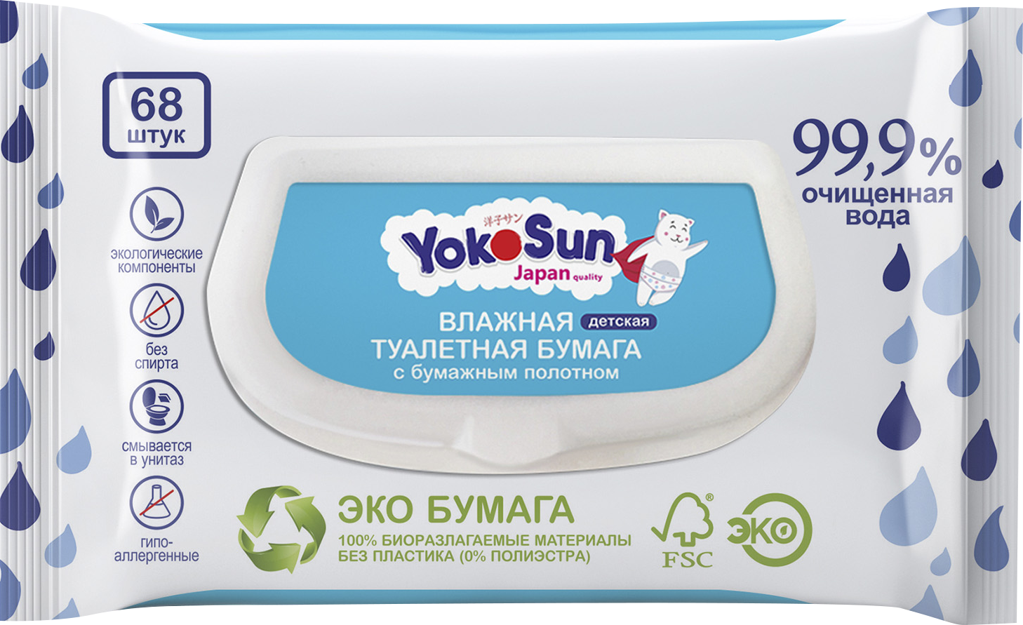 Влажная туалетная бумага Yokosun детская , 68 шт