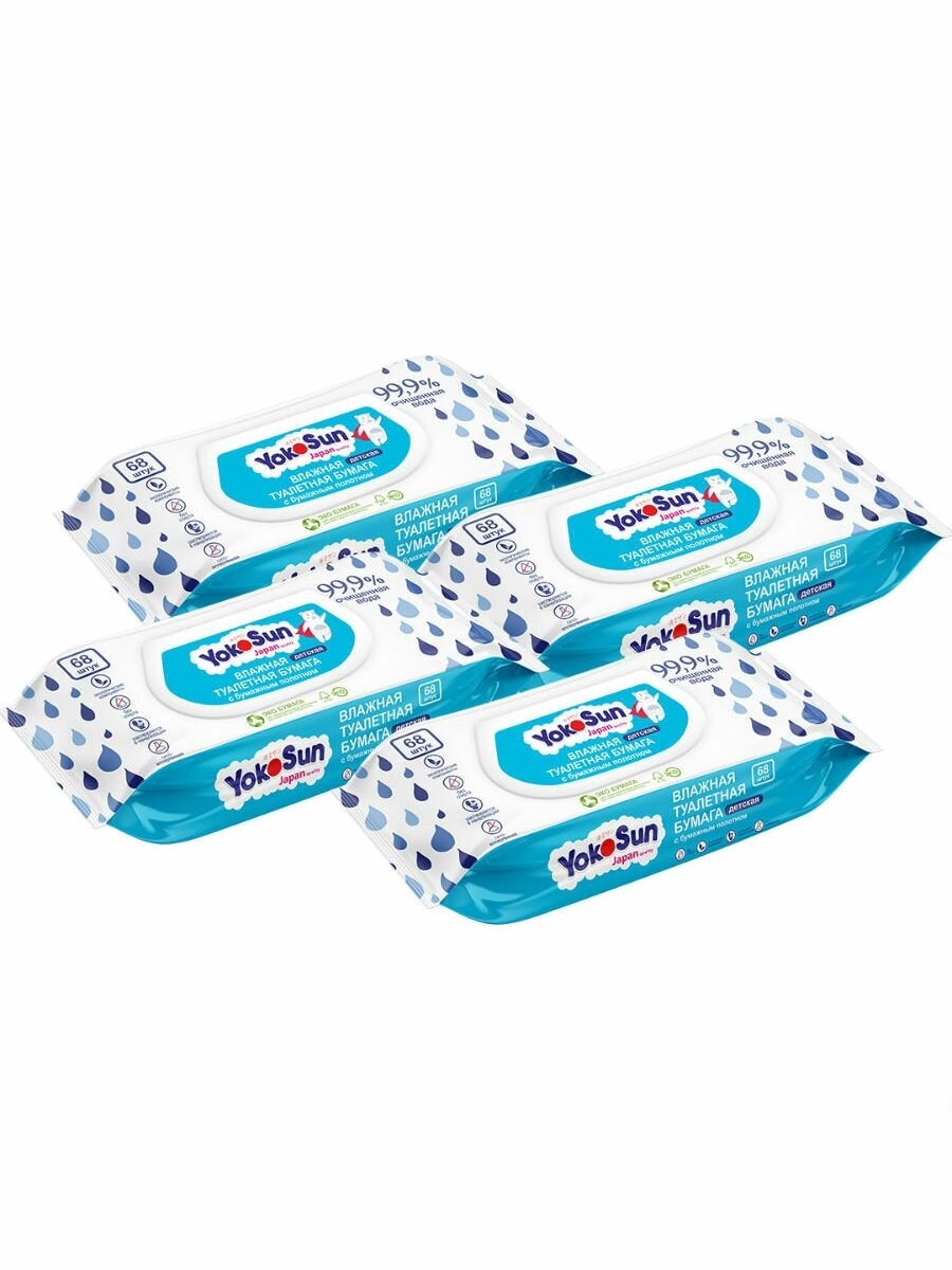 Детская влажная туалетная бумага "YokoSun""Megabox", 4 упаковки по 68 шт,