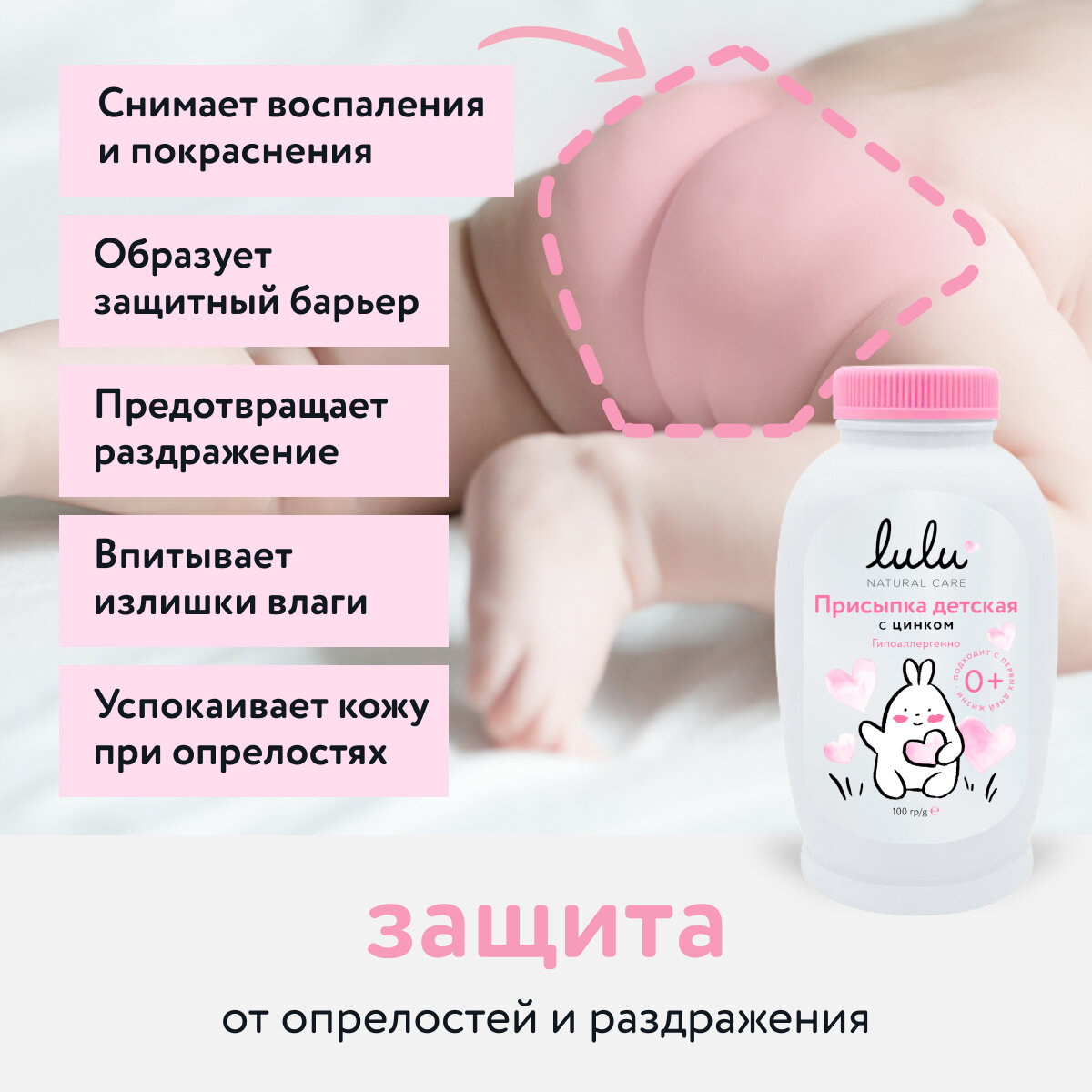 Присыпка детская LULU для новорожденных с цинком, тальк от опрелостей, покраснений, раздражения под подгузник, 100 г. интересное: