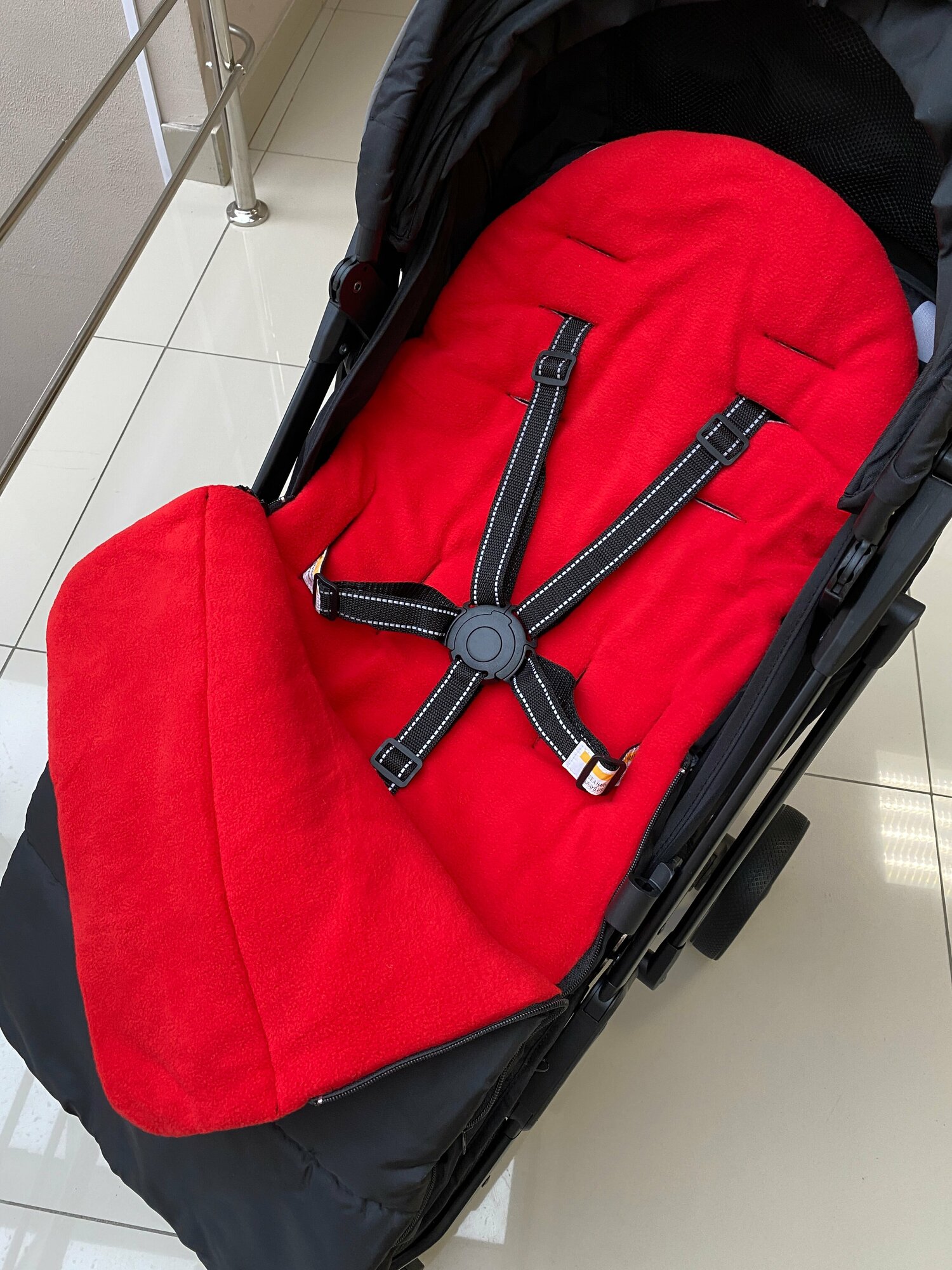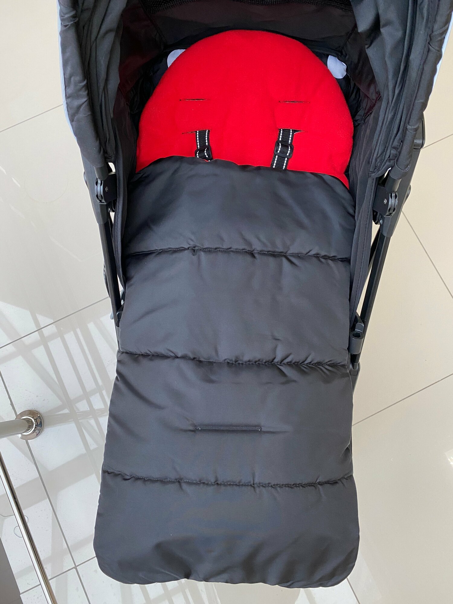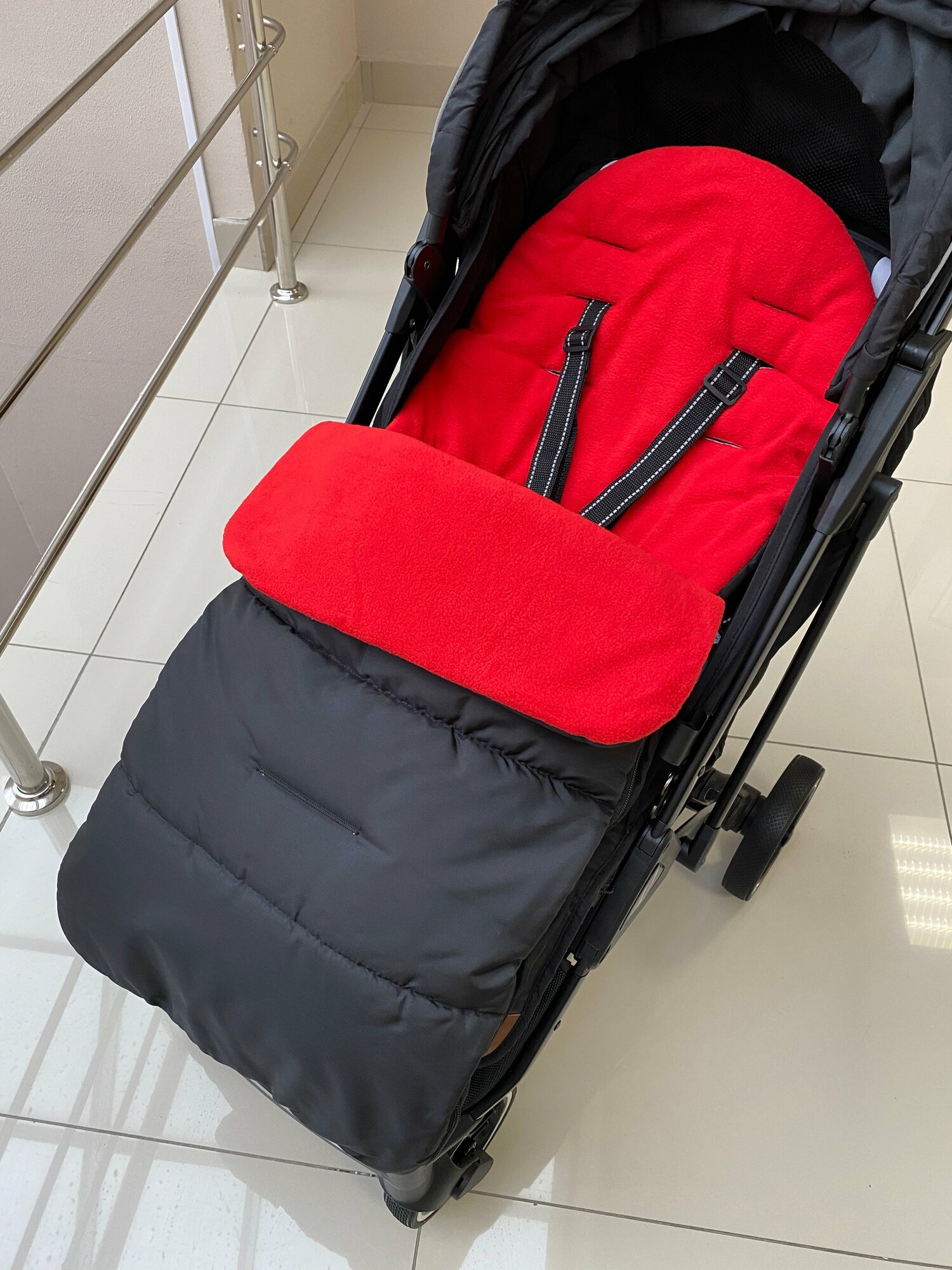 Конверт матрас в детскую прогулочную коляску демисезонный, черно-красный интересное: