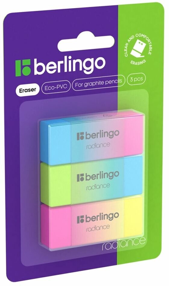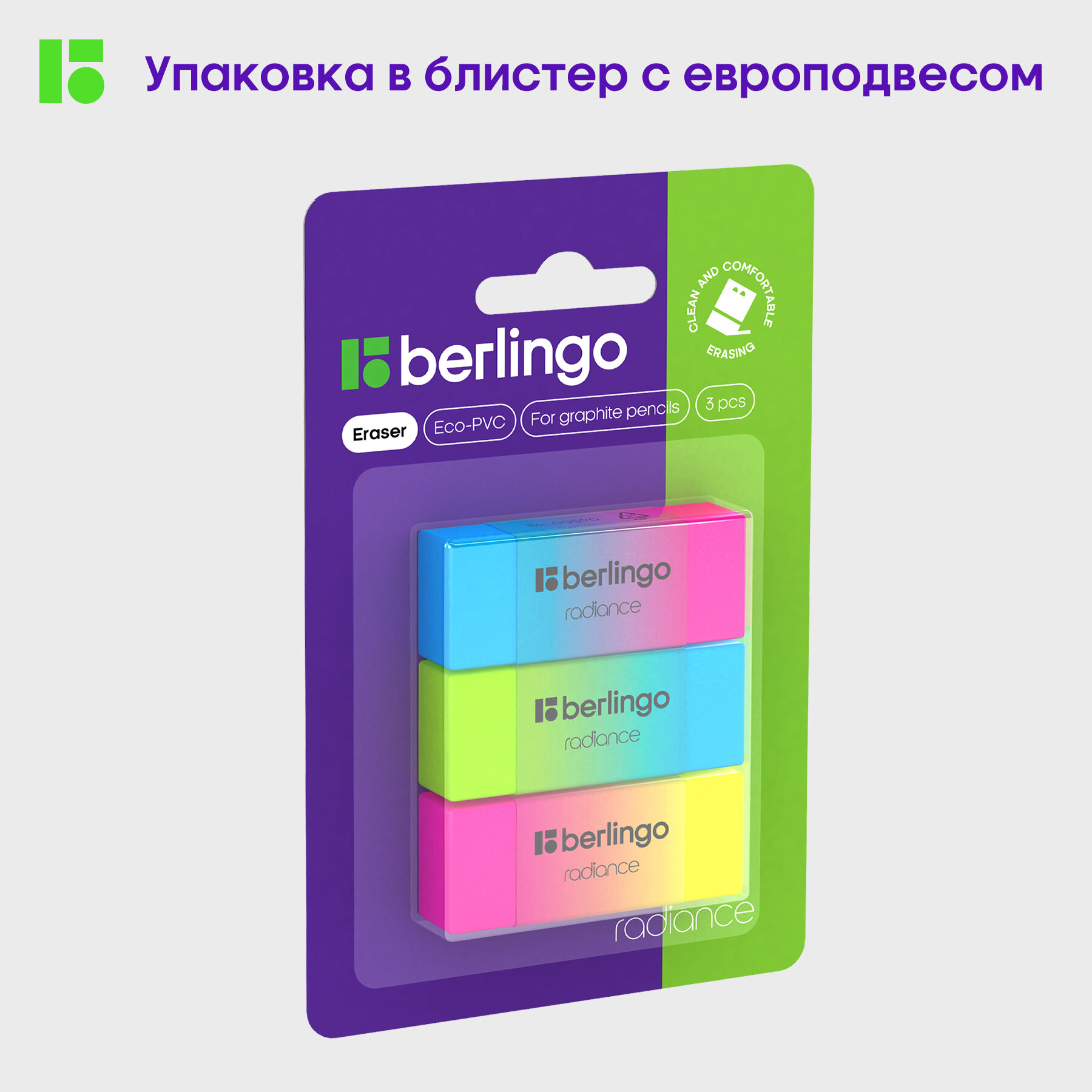 Купить Ластик Berlingo "Radiance ", 3шт, прямоугольные, 50*18*10мм