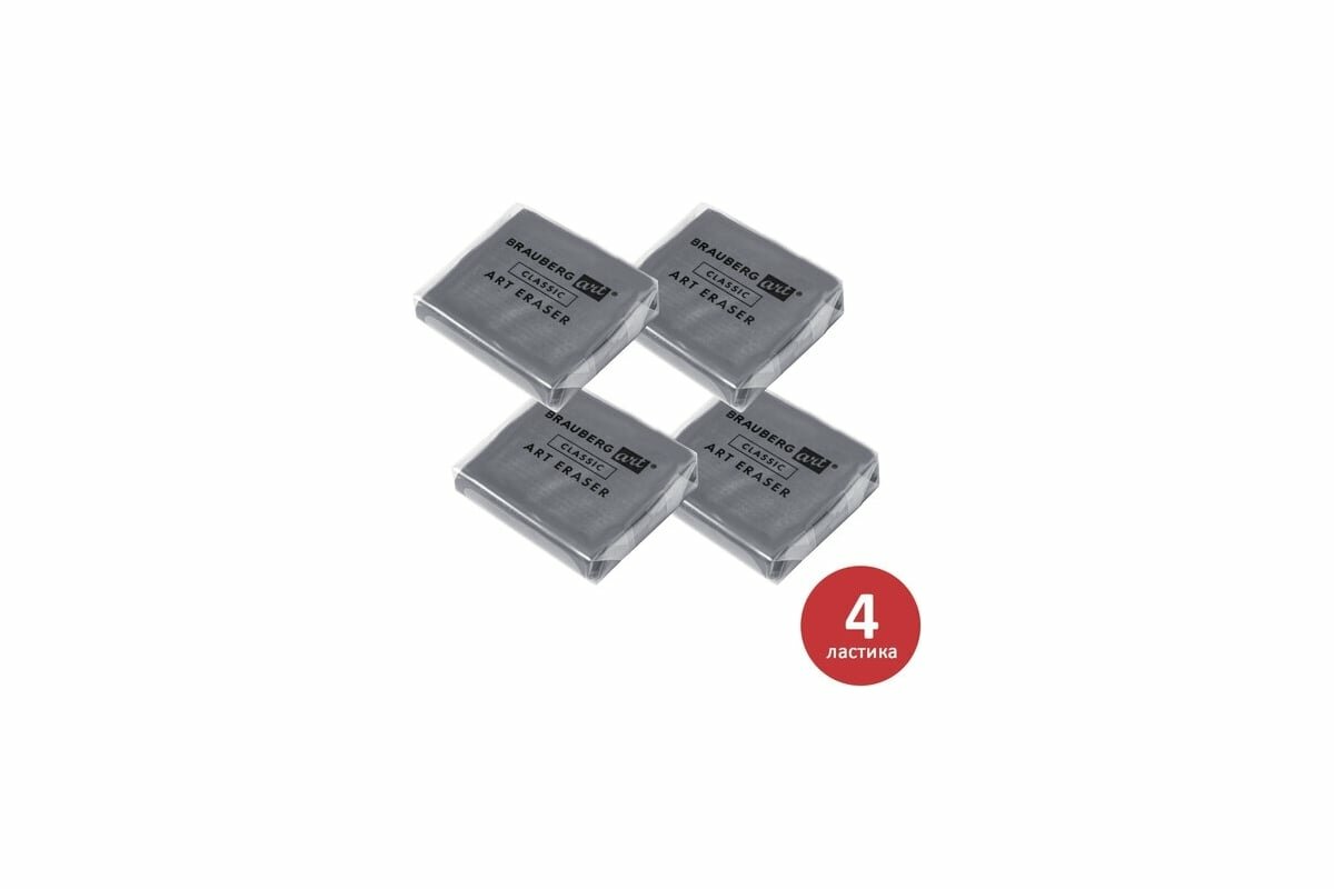 Ластик-клячка / ластик художественный Brauberg Art Classic, Комплект 4 штуки, размер ластика 40х36х10мм, супермягкий интересное: