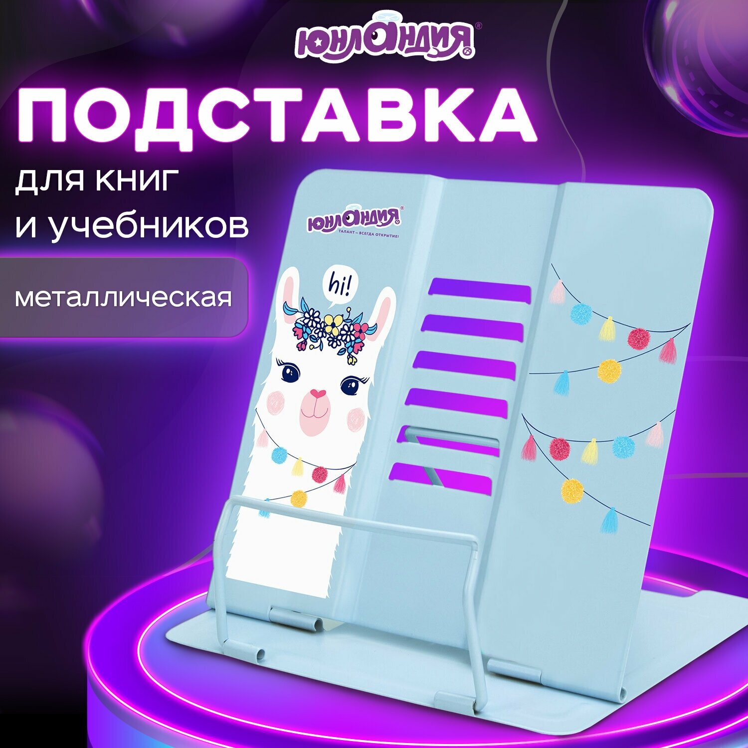Подставка для книг, учебников, журналов настольная школьная Юнландия Lama, регулируемый угол наклона, металл, 237576 интересное: